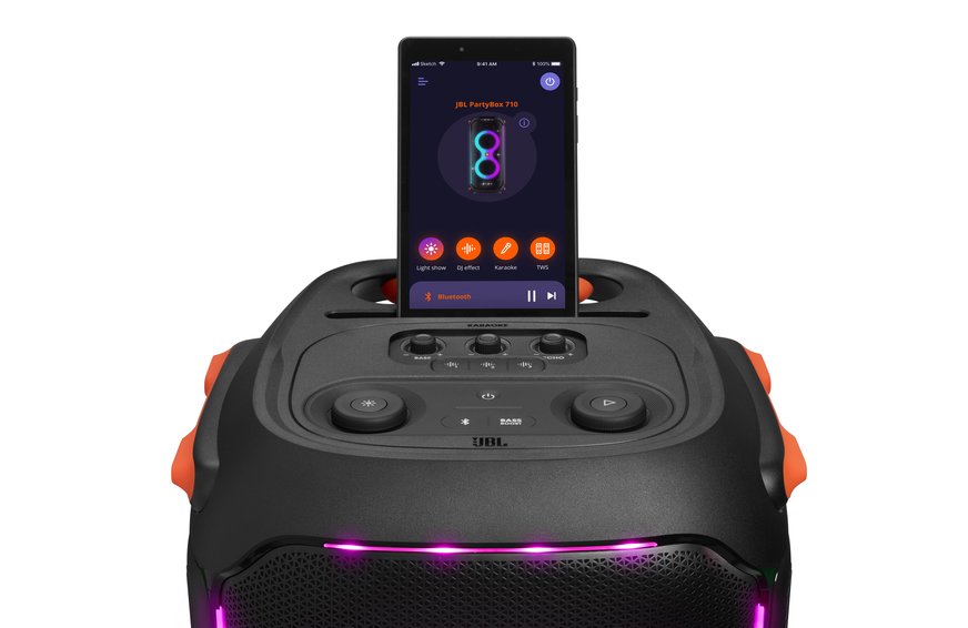 Ozvučenie väčších priestorov, ako je veľká klubovňa, tanečná sála, prípadne ozvučenie väčšej záhradnej párty či outdoorovej akcie si vyžaduje veľké a výkonné reproduktory. JBL Partybox 710 disponuje RMS výkonom 800 W s možnosťou prepojiť dva reproduktory a vytvoriť tak stereofónnu zostavu, ktorá dokonale ozvučí akýkoľvek priestor. Dva basové akustické meniče s priemerom 216 mm pri adekvátne nastavenej hlasitosti spôsobia, že dunivé basy budete nielen počuť, ale vplyvom akustického tlaku aj cítiť. To je presne ten pocit, pre ktorý sa (okrem iného) chodí na diskotéky, popové alebo rockové koncerty. Na reprodukciu vyšších frekvencií sú určené ďalšie dva akustické meniče s priemerom 70 mm v hornej časti. Štvoricu akustických meničov dopĺňa basreflexová trubica s otvorom vyvedeným v dolnej tretine zadnej steny. Reproduktor vo vertikálnej polohe po zatvorení krytu konektorov v zadnej časti je odolný proti striekajúcej vode podľa požiadaviek špecifikácie IPX4, takže ani prípadný dážď nie je problém. Premiestňovanie zariadenia s hmotnosťou takmer 30 kg vám uľahčia praktické kolieska.
