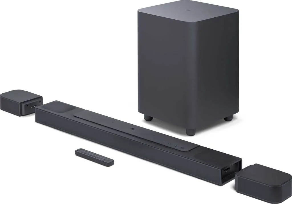 Zostavu JBL BAR 800 tvorí soundbar, subwoofer s 10” meničom na reprodukciu basov a dva odoberateľné satelitné reproduktory, ktoré môžu byť buď pripojené po stranách soundbaru, alebo umiestnené za poslucháčmi na dosiahnutie reálneho priestorového zvuku 5.1.2 a podporou Dolby Atmos. Prenos signálu je bezdrôtový a satelitné reproduktory majú vlastné nabíjateľné batérie. Celkový výkon zostavy je 720 W, takže dokáže ozvučiť aj veľkú halu v modernom byte, či klubovňu. Frekvenčná odozva 35 Hz - 20 kHz je zárukou vernej reprodukcie vrátane dunivých basov a zvukovách efektov. Cena v akcii 674,99 € (bežná cena 899,99 €) .