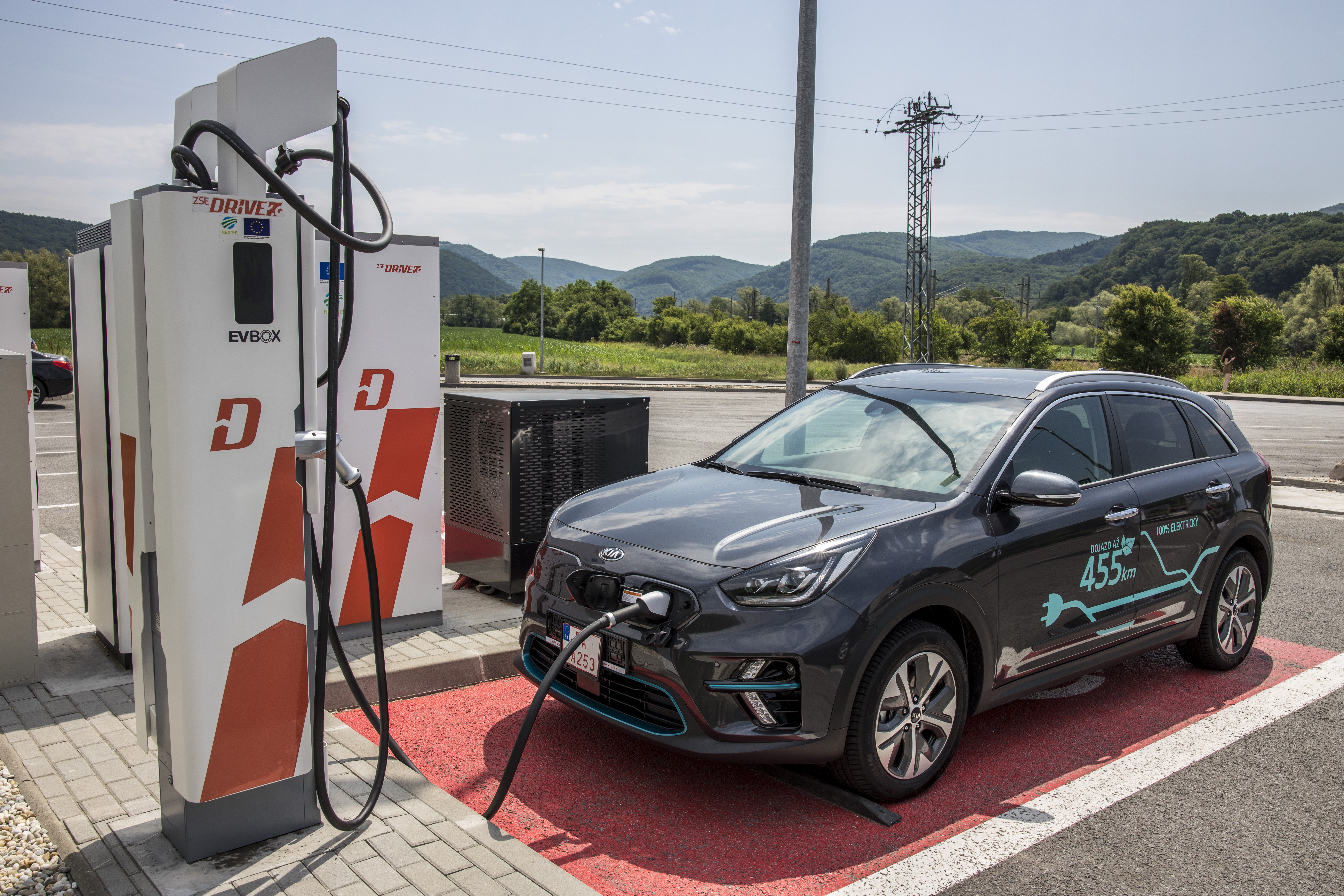 Jazdné vlastnosti sú veľmi dobré. 150 kW výkonu s krútiacim momentom 395 Nm vystrelí vozidlo na stovku za 7,9s. Výkon je prenášaný iba na prednú nápravu, takže hlavne na klzkej vozovke je treba byť opatrnejší. V zákrutách drží dobre vďaka nízkemu ťažisku. Priestor pre posádku je veľmi dobre riešený a aj na zadných sedadlách je dostatok priestoru. Kufor je menší ako na e-Niro, kočík doňho nenapracete, na bežné potreby však ponúka priestoru dostatok. Vozidlo som mal na test v čase horúčav, takže asi 85% jázd som absovoval s klimatizáciou a asi 45% jázd po diaľnici. Napriek tomu sa dojazd pohyboval okolo 380 km. Pri jazde mimo diaľnice, prevažne po okreskách som dosiahol 460 km. V mestskej prevádzke bez použitia kúrenia či klimatizácie má vozidlo potenciál dosiahnuť cez 550 km. Celkovo som počas testu najazdil 1560 km so spotrebou 15,3 kWh/100 km. Pri jazde mimo diaľnicu dosiahnete spotrebu 11,5-13 kWh/100 km podľa štýlu jazdy. Interná nabíjačka je jednofázová takže z 230V nabíjate maximálne 2,3kW ( plné nabitie z 10% necelých 33 hodín) , z Wallboxu 16A maximálne 3,7 kW (20h 30 min) a z wallboxu pri prúde 32A využijete plnú kapacity nabíjačky 7,2 kW ( 10h 30 min). Ak máte k dispozícii 3 fázový Wallbox, vozidlo bude využívať iba jednu fázu. Na AC nabíjanie sa využíva konektor Typ2, na DC nabíjanie slúži CCS. Ten umožňuje nabíjanie maximálnym výkonom 78 kW (nabitie z 10% na 80% asi za 44 minút) na Ultra Fast nabíjačke. Na bežných 50 kW rýchlonabíjačkách nabíja výkonom 49 kW (63 min) Pri nabíjaní na 100% musíte prirátať v oboch prípadoch ďalších 45-55 minút. Pri nabíjaní na Ultra Fast nabíjačke by mohlo byť nabitie rýchlejšie, vozidlo však plným výkonom nabíja cca do 40% potom klesá výkon asi na 66 kW asi do 55%, potom na 57 kW do asi 72% , na 37 kW až do 78% a ďalej sa drží až do 89% na 26 kW a smerom k plnému nabitiu klesá. Výkon však záleží aj na teplote batérie, takže podľa toho sa potom charakteristika prispôsobuje. Pri teste po diaľničnej jazde začínalo pri 19% nabíjanie na 64kW a na 78kW sa dostalo asi po prvých 10 minútach.