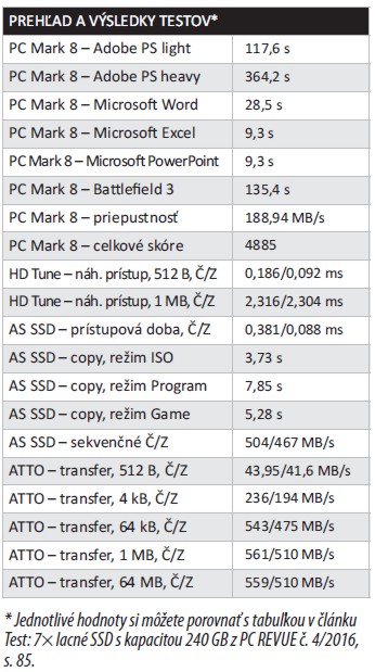 + Pomer cena/výkon, vysoký výkon pri práci s úplne najmenšími dátami, rýchly zápis i čítanie väčších súborov