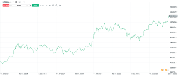 ,,V aktuálnom trhovom prostredí, kde sú investori mimoriadne odolní voči negatívnym správam a na trhu, prevláda atmosféra nesmrteľnosti. Rizikové aktíva ako Bitcoin majú ideálny priestor na ďalší rast. Pokiaľ nepríde na trhoch žiaden zásadný šok, investori ostávajú vo vyčkávacom alebo nákupnom móde. V takomto prostredí si viem predstaviť, že Bitcoin by mohol do konca roka dosiahnuť hranicu 150 000 dolárov za kus čo by predstavovalo približne 25 % zhodnotenie z aktuálnych úrovní, čo v prípade Bitcoinu stále nie je nič výnimočné. Pre porovnanie, od začiatku roka 2025 sa jeho cena zvýšila približne práve o 25 %,” hovorí analytik finančných trhov XTB Matej Bajzík.