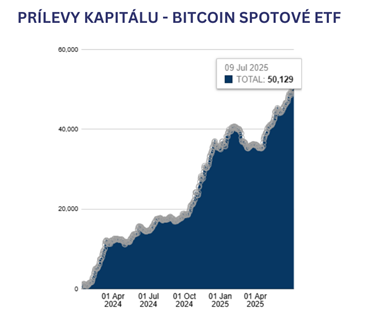 Za rastom Bitcoinu stojí kombinácia viacerých faktorov. Jedným z hlavných je stály prílev kapitálu cez spotové ETF, ktoré od svojho schválenia v januári 2024 zaznamenali už viac ako 50 miliárd dolárov v spravovaných aktívach. Túto hranicu prekonali práve v čase, keď Bitcoin v dolárovom vyjadrení dosahuje nové historické maximum. Silné prítoky kapitálu naznačujú, že aj inštitucionálni investori dnes vnímajú Bitcoin ako čoraz dôveryhodnejšiu súčasť portfólií. Ďalším dôležitým faktorom sú očakávania znižovania úrokových sadzieb zo strany amerického Fedu ku koncu roka, čo všeobecne podporuje rizikové aktíva a Bitcoin je v takomto prostredí opäť doma. Významnú úlohu zohráva aj slabnúci americký dolár, ktorý robí z Bitcoinu atraktívnejšiu alternatívu na udržanie hodnoty, najmä v očiach zahraničných investorov. Keď dolár stráca, globálne aktíva denominované v USD sa stávajú lacnejšie a prístupnejšie, čo zvyšuje dopyt po nich a Bitcoin nie je výnimkou.