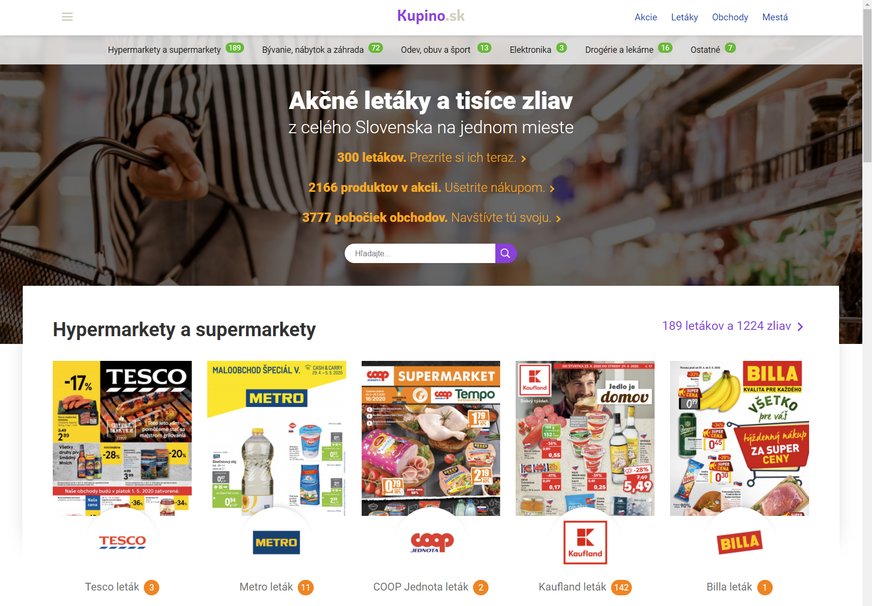 Dnešná doba by sa z historického hľadiska dala pokojne nazvať dobou reklamnou. Reklama sa na nás valí zo všetkých strán, z tlače, rádia, televízie, internetu. Špecifický fenomén je letáková reklama, ktorej rozsah pri mnohých obchodných sieťach už dávno prekračuje rozumnú mieru. Ak bývate v bytovke v meste, dobre poznáte situácie, keď sa vám vo vchode za týždeň nazhromaždia desiatky kíl takýchto letákov. Samozrejme, veľa ľudí si ich číta, no pri ich záplave aj tak väčšina končí v odpade. Skutočnosť, že to má veľký dosah na životné prostredie, asi netreba nikomu zdôrazňovať. Preto ma zaujal projekt servera Kupino.sk, ktorý nedávno vydal aj mobilnú aplikáciu nazvanú Kupino. Princíp je veľmi jednoduchý – zhromažďuje na jednom mieste dostupné letáky azda všetkých obchodných reťazcov na Slovensku.