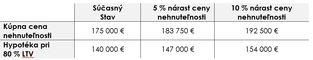 Tabuľka 1: Dopad očakávaných rastúcich cien nehnuteľnosti na výšku hypotéky