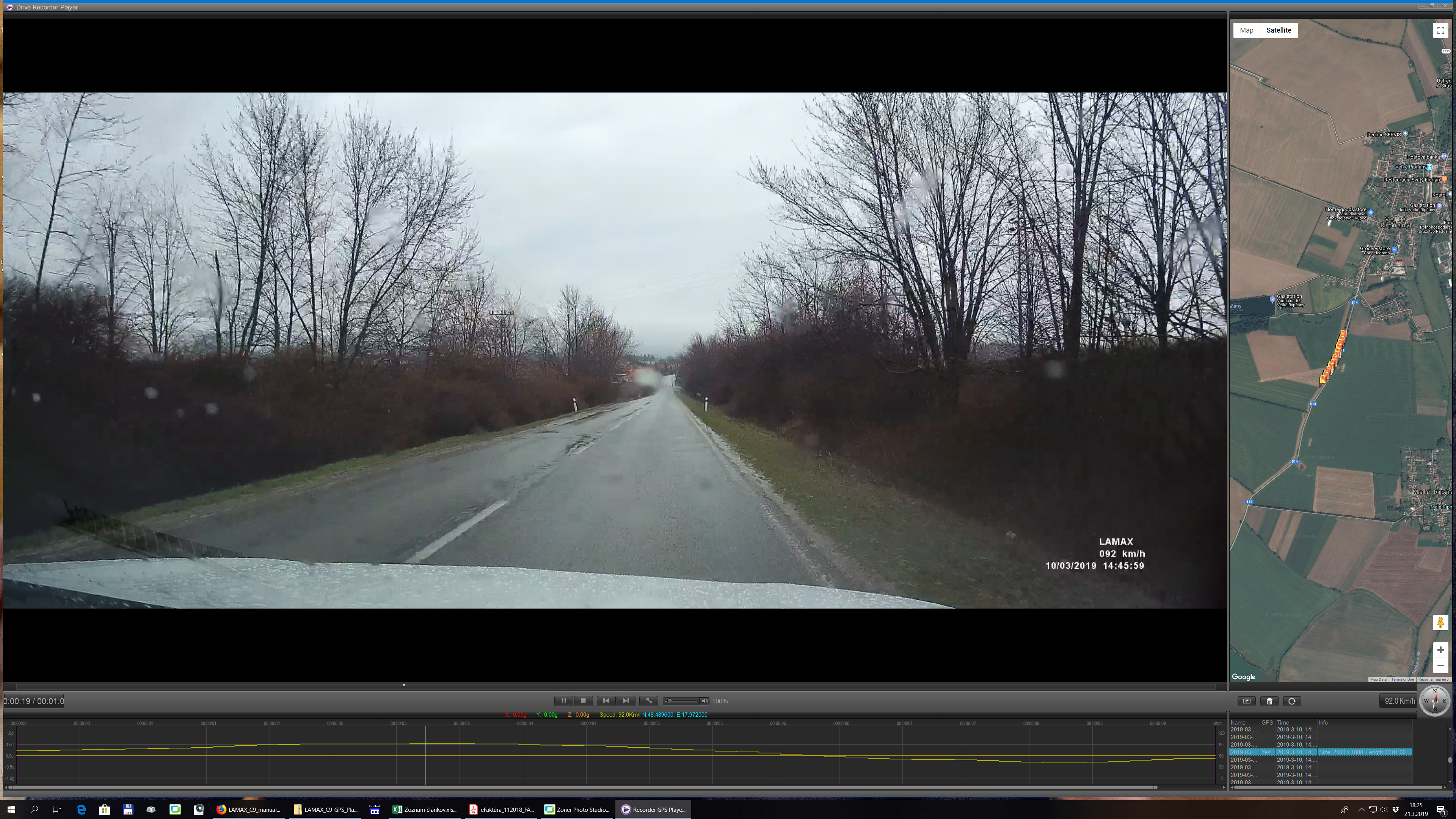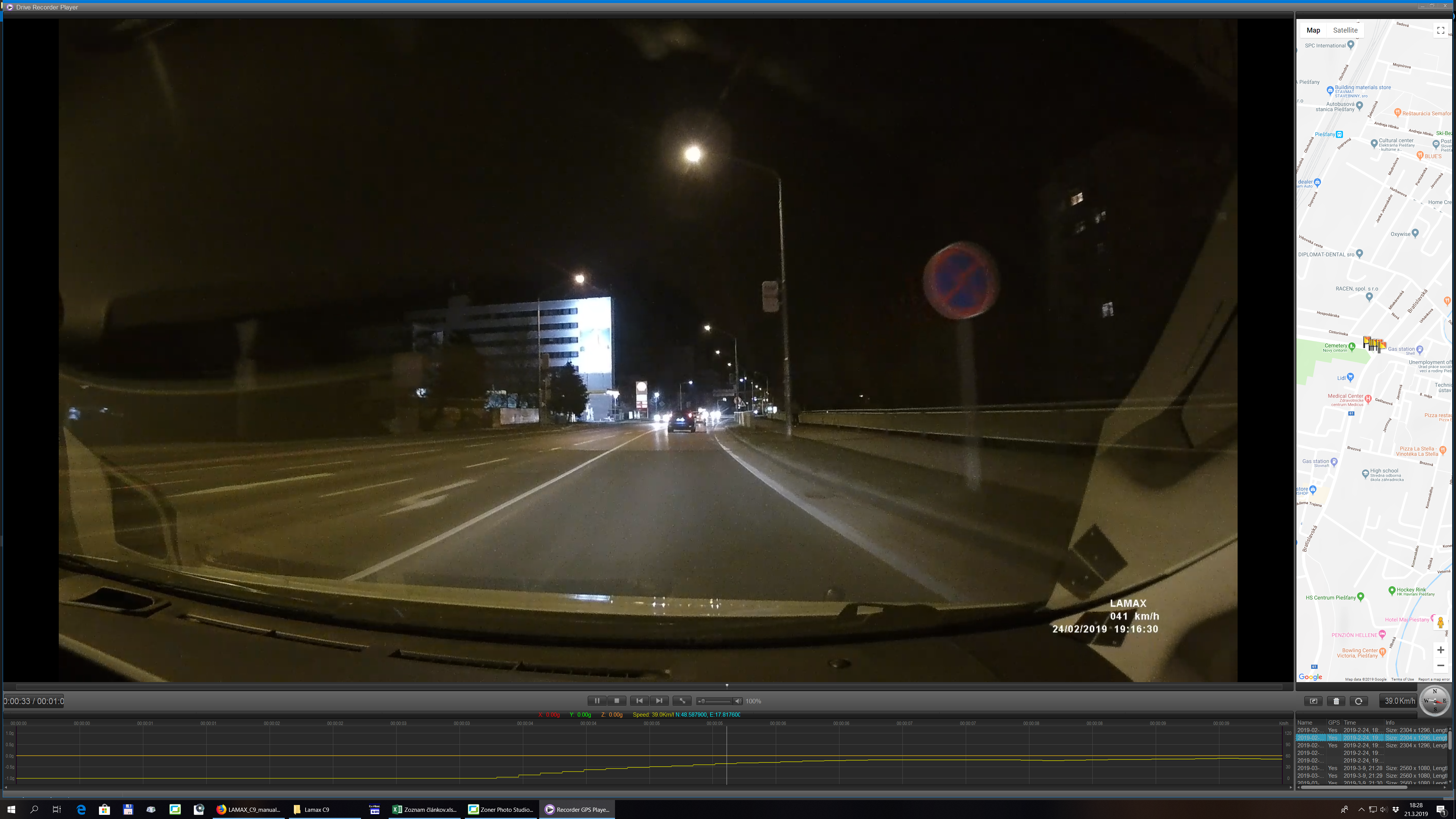 Musím uznať, že kamera ma veľmi príjemne prekvapila. Obraz má dostatočnú ostrosť aj detaily a slušne si poradí aj s natáčaním v noci. Oceňujem aj dodávanú aplikáciu pre PC, ktorá zobrazuje záznamy zoradené podľa dátumu a počas prehrávania ukazuje polohu na mape aj parametre rýchlosti, výšky aj preťaženia v troch osiach. Aplikácia navyše fungovala veľmi spoľahlivo na prvé spustenie. Kamera sa cenovo radí k najvyšším modelom a zodpovedá tomu aj jej vyhotovenie, kvalita záznamu a výbava.