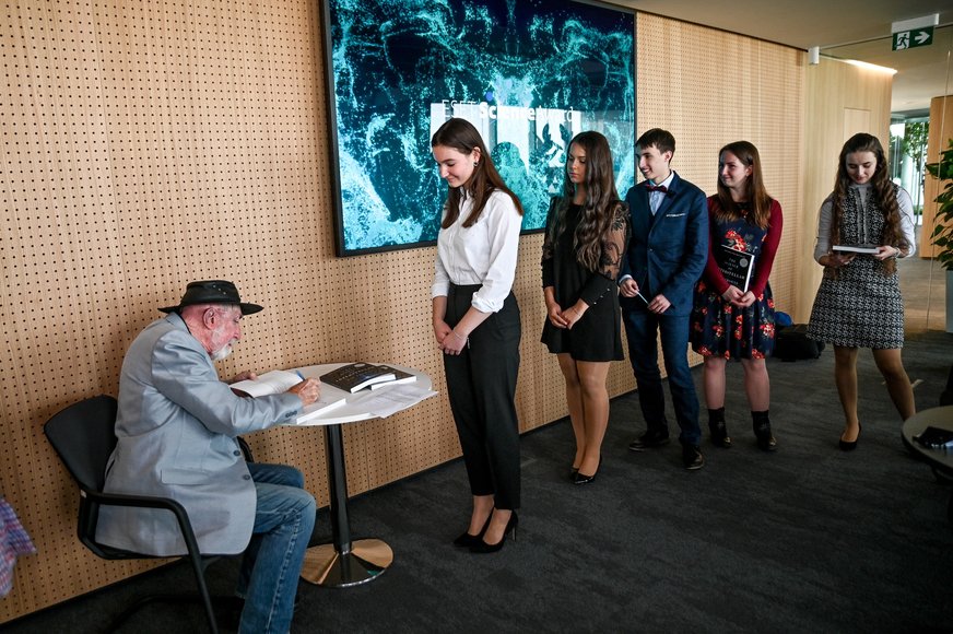 Profesor Kip Thorne prišiel na Slovensko v úlohe predsedu medzinárodnej komisie ocenenia ESET Science Award. Profesor už druhý rok v rámci ocenenia spoznáva prácu slovenských vedeckých osobností a mladých vedcov do 35 rokov. Tento rok navyše spoznal aj mladé talenty fyziky zo stredných škôl. Skupina, ktorej dominujú štyri mladé ženy, mu počas stretnutia odprezentovala svoje víťazné zadanie, s ktorým v lete zabodovali v gruzínskom Kutajsí.