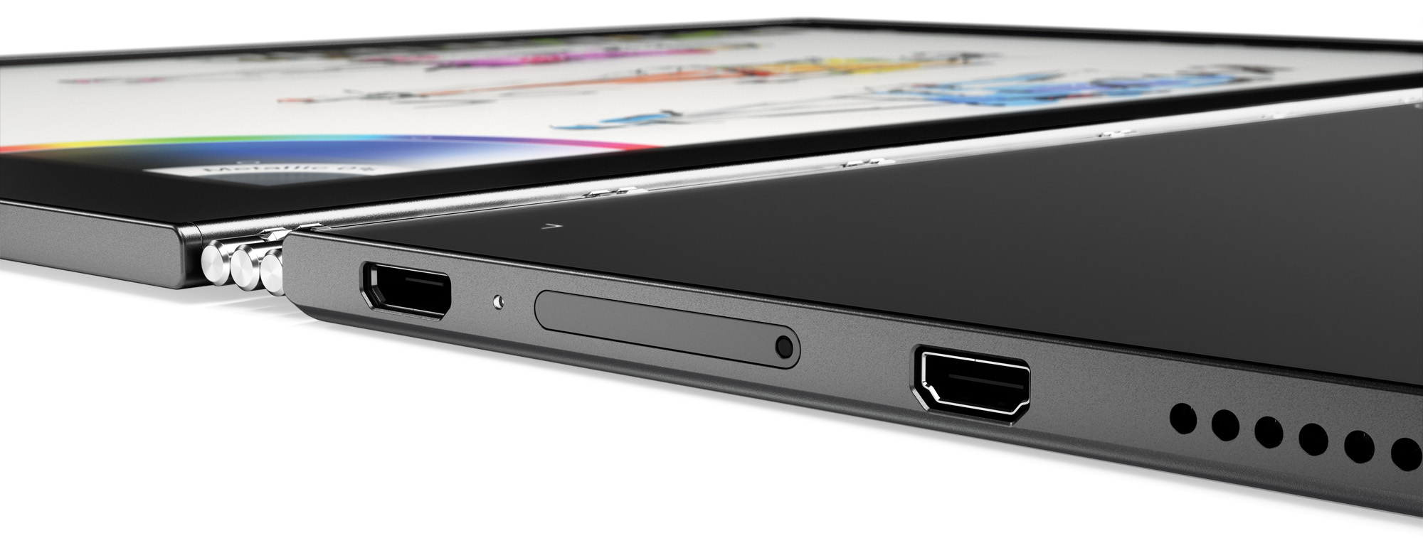 Prívlastok najtenší si však vyžiadal aj niektoré kompromisy. Je to predovšetkým zabudovanie len dvoch portov – micro USB a micro HDMI. Bežný kľúč USB tak pripojíte len cez káblik USB On-The-Go, ktorý nie je súčasťou dodávky. Takže tento káblik bude určite prvé príslušenstvo, ktoré si k Yoga Book kúpite. Nielen konektivita, ale predovšetkým rýchlosť nabíjania je limitovaná možnosťami portu micro USB.