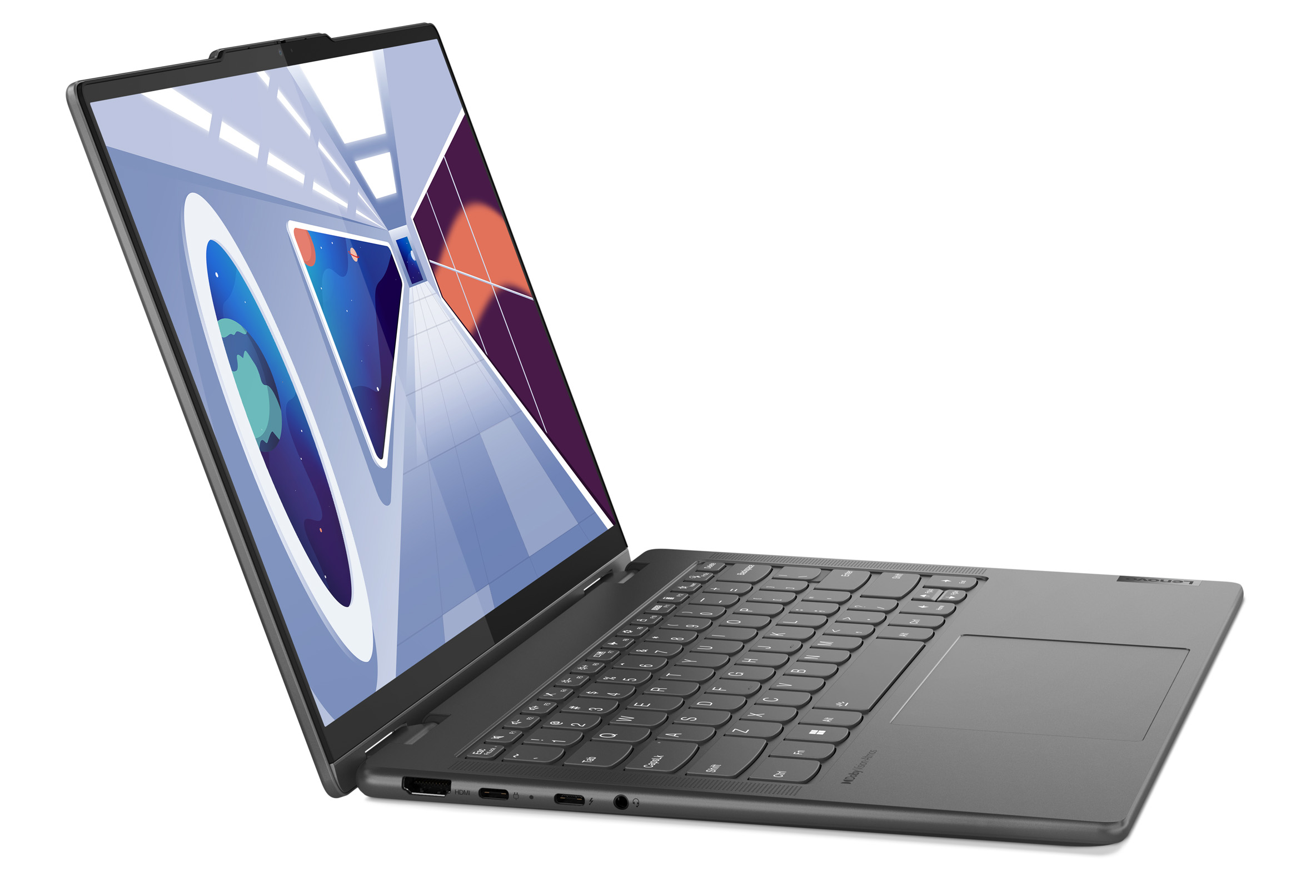 Lenovo Yoga 7 14ARP8 82YM0051CK: procesor: AMD Ryzen 7 7735U, grafika integrovaná AMD Radeon 680M, čipová súprava: platforma AMD SoC, pamäť: 16 GB, integrovaná LPDDR5-6400, úložisko: 1 TB SSD M.2 2242 PCIe 4.0x4 NVMe, slot pre úložisko: jeden slot M.2 2242 PCIe 4.0 x4, čítačka kariet microSD, zvukový čip: Realtek ALC3306, stereo reproduktory: 2 × 2 W, optimalizované s Dolby Atmos, Smart Amplifier (AMP), kamera: FHD 1080p + IR s ochranným závesom, mikrofón: 2×, pole mikrofónov, batéria: integrovaná 71 Wh, adaptér: 65 W USB-C Slim (nástenný), displej: 14" 2.8K (2880 × 1800) OLED, 400 nitov Glanz/proti odtlačkom, 100 % DCI-P3, 90 Hz, Eyesafe, Dolby Vision, DisplayHDR True Black 500, sklá, dotykový, OGM, 10-bodový viacdotykový, klávesnica: podsvietená, česká/slovenská, touchpad, bez tlačidiel, sklenený povrch ako Mylar, podpora Precision TouchPad (PTP), 75 × 120 mm, materiál puzdra: hliník (vrchný aj spodný kryt), pero: Lenovo Digital Pen, rozmery (š × h × h) 317,87 × 222,50 × 16,49 mm, hmotnosť: od 1,49 kg, OS: Windows 11 Home, český, slovenský, anglický, Wi-Fi 6E, 11ax 2×2 + BT5.3, štandardné porty: 1× USB-A (USB 5 Gb/s, USB 3.2 Gen. 1), Always On, 1× USB-C (USB 10 Gb/s,USB 3.2 Gen. 2), s podporou USB PD 3.0 a DisplayPort 1.4, 1× USB-C (USB4 40 Gb/s), s podporou USB PD 3.0 a DisplayPort 1.4, 1× HDMI 1.4b, 1× kombinovaný konektor na slúchadlá/mikrofón (3,5 mm), 1× čítačka kariet microSD, ďalšia bezpečnosť: IR kamera pre Windows Hello (rozpoznanie tváre), ochranná krytka kamery, certifikácie: Eyesafe Certified 2.0, TÜV Rheinland Low Blue Light (Hardware Solution), test MIL-STD-810H, MIL-STD-810H