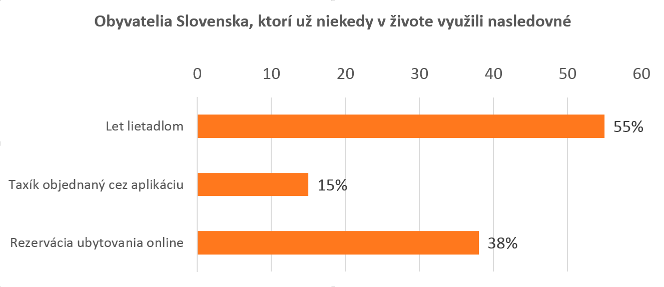 Spoločnosť Go4insight zisťovala, ako si obyvatelia Slovenska zvykajú na moderné spôsoby zabezpečenia cestovania s využitím internetu a mobilných aplikácií. Lietadlom doteraz letela len o čosi viac ako polovica obyvateľstva. Výrazne rastie obľuba rezervácie ubytovania cez internet.