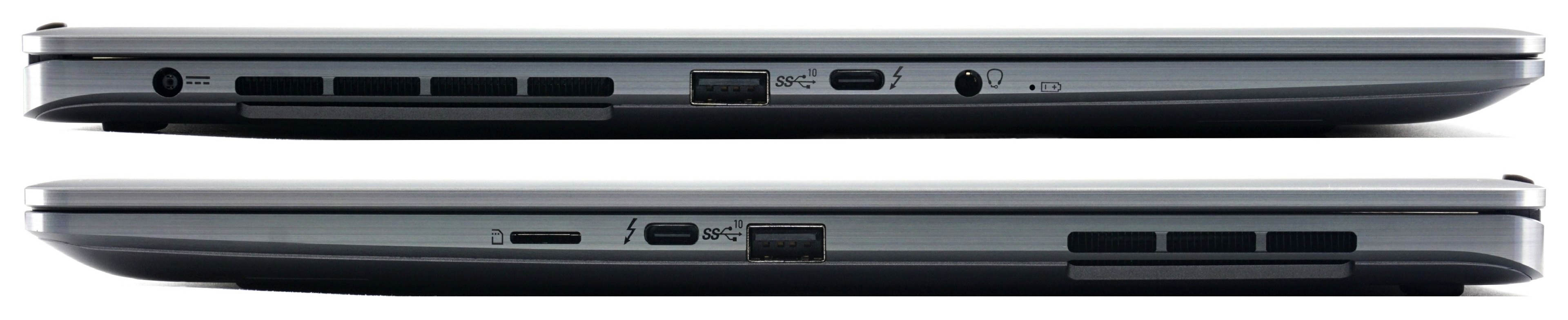 Porty USB-A sa na výšku zmestili, sú dva 10-gigabitové (štandard 3.2 gen. 2) a nad rámec bežnej výbavy sú aj dva 40 Gb porty USB-C s podporou Thunderbolt 4 či čítačka pamäťových kariet microSD.