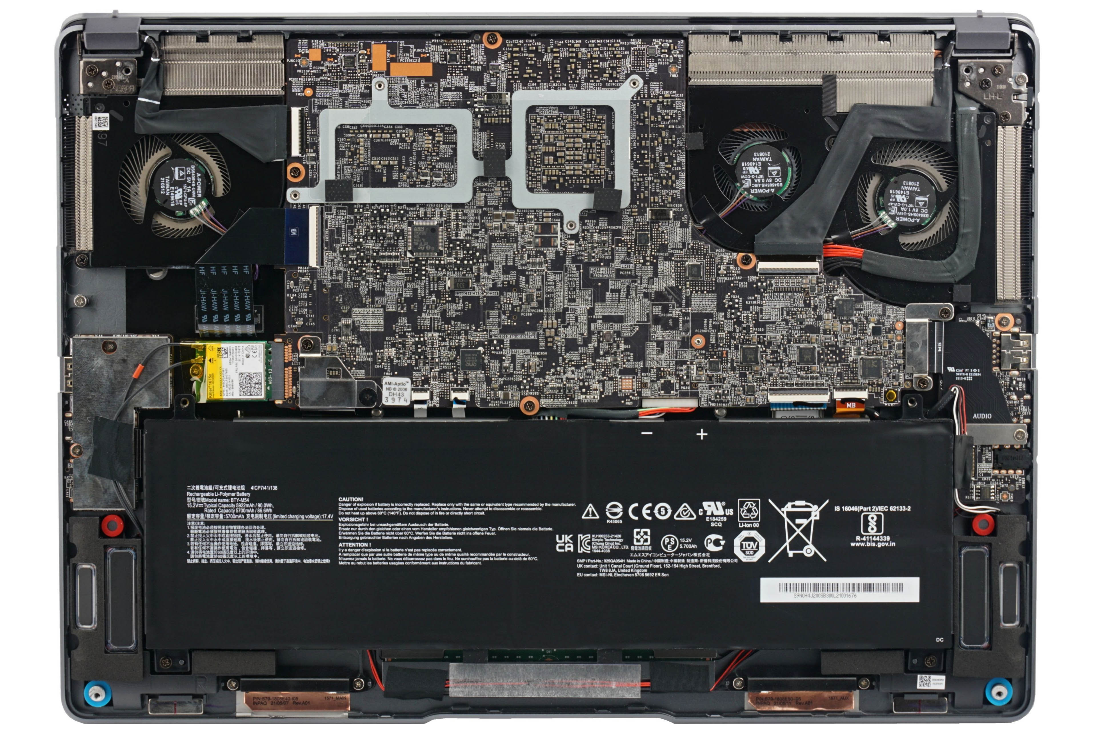 Budúce rozšírenie a výmena SSD a RAM trochu komplikuje orientácia základnej dosky. K nej sa síce dostanete pomerne jednoducho, ale z nesprávnej strany bez slotov SO-DIMM a M.2. Tie sú totiž pod klávesnicou. Na výmenu úložiska v budúcnosti bude treba vybrať celú základnú dosku, čo už vyžaduje viac skúseností, rozhodne nad rámec bežného používateľa.