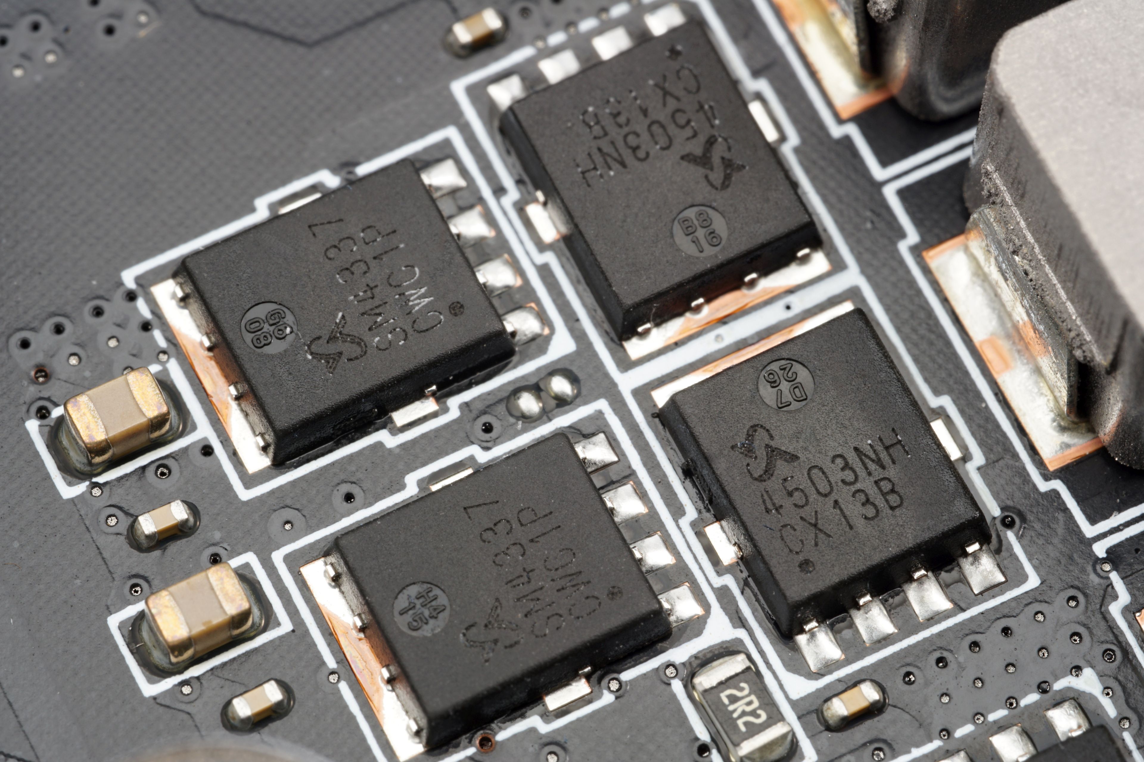 Detail časti napájacej kaskády Vcore (VRM), MOSFETy Sinopower SM4337 a 4503