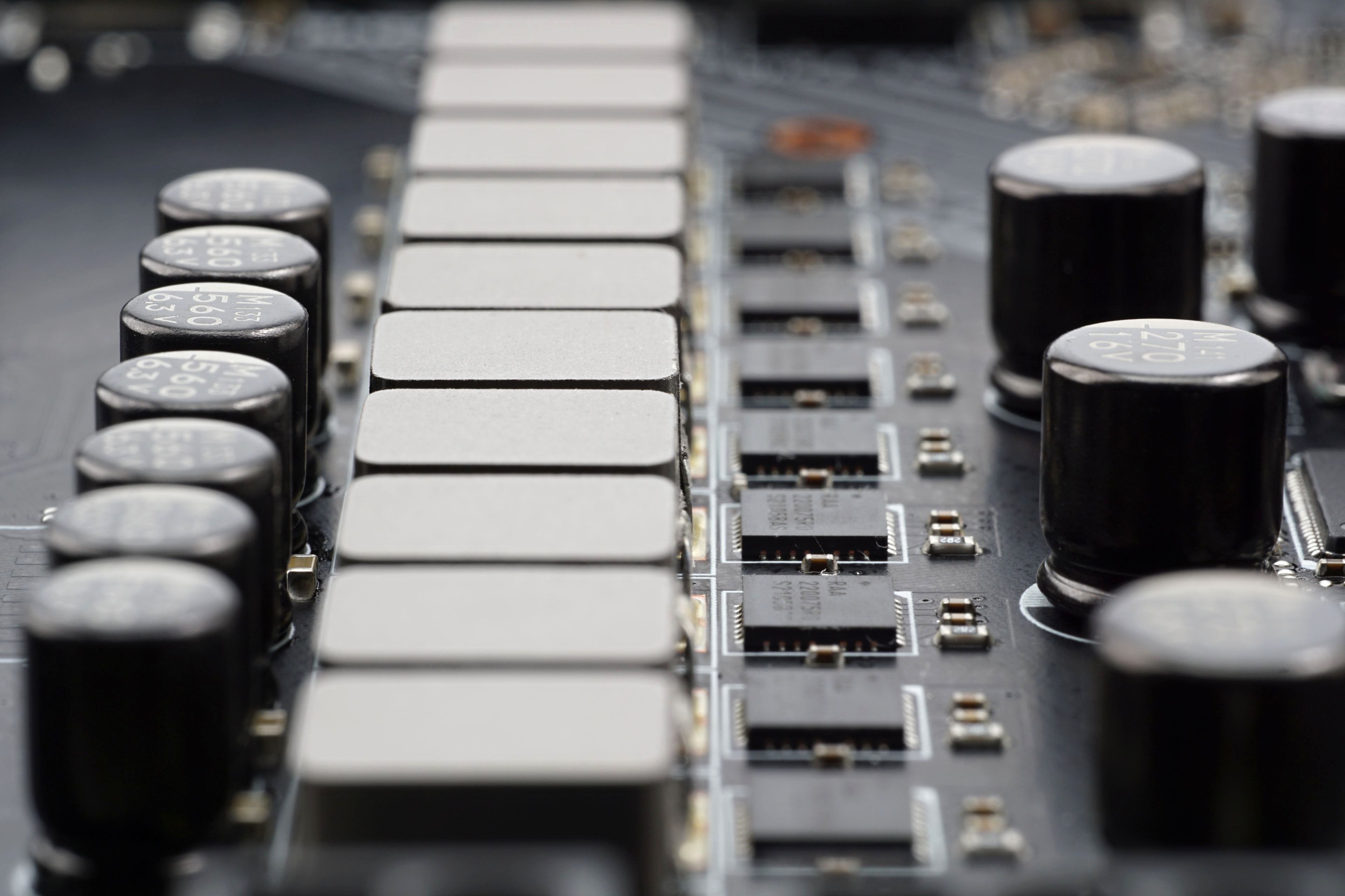 Rad kondenzátorov, cievok a MOSFETov napájacej kaskády