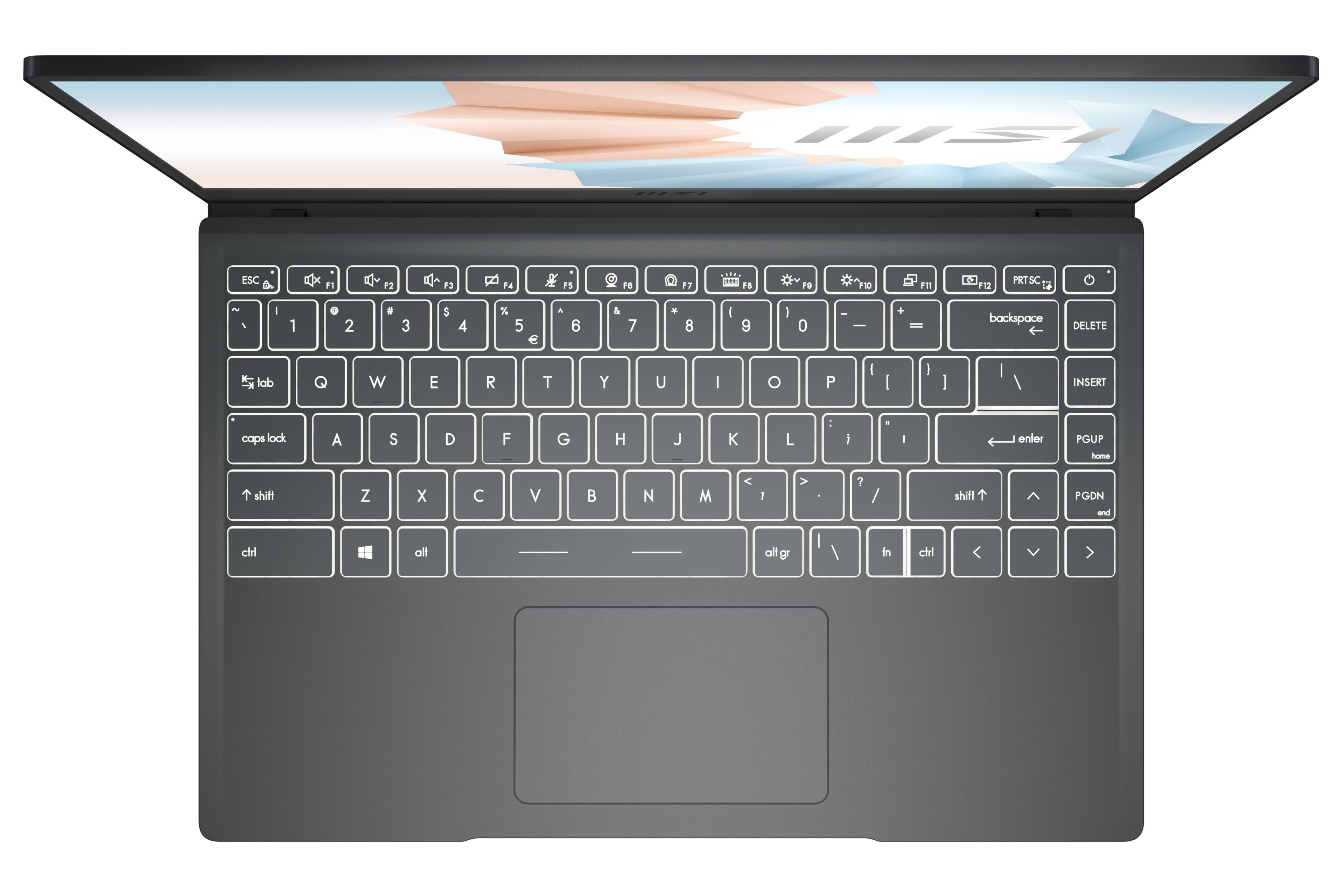 Notebooky Modern 14 v ponuke MSI predstavujú vhodnú možnosť pre používateľov, ktorým záleží okrem funkčných parametrov aj na decentnom vzhľade. Celokovové hliníkové šasi s brúsenou úpravou povrchu pôsobí naozaj dobre. Jeden z ranných modelov Modern 14 sme už kedysi testovali a robustné vyhotovenie bol a stále je jeden z plusov tohto zariadenia. Jedna z najvýraznejších zmien v rozložení je u nových notebookov Modern 14 v pozícii reproduktorov. Tie bývali nad klávesnicou, ale už zospodu. Pre takéto formátovanie sa mohla klávesnica posunúť vyššie (bližšie k displeju) a tým pádom vznikol väčší priestor okolo clickpadu. Práca tak bude pohodlnejšia.