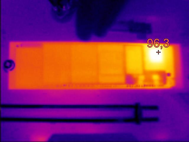 Termovízia odhalila vyššie zahrievanie radiča, takže je vhodné použiť na SSD chladič, ktorý býva súčasťou všetkých lepších základných dosiek
