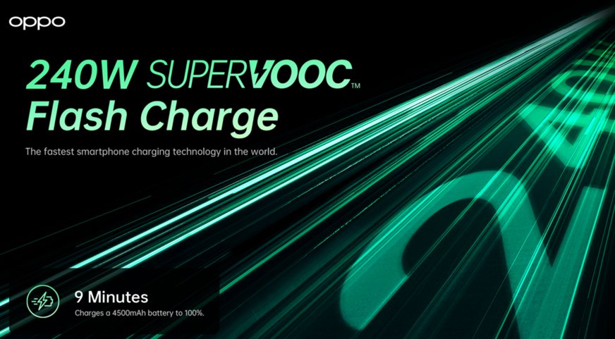 Od uvedenia technológie OPPO SUPERVOOC v roku 2014 je spoločnosť OPPO jedným z lídrov vo vývoji a inováciách technológie rýchleho nabíjania. Bleskové SUPERVOOC nabíjanie s výkonom 150 W, založené na technológii priameho nabíjania s nabíjacími pumpami, dokáže nabiť batériu s kapacitou 4 500 mAh na 50 % za 5 minút a zaistiť 100% nabitie len za 15 minút.