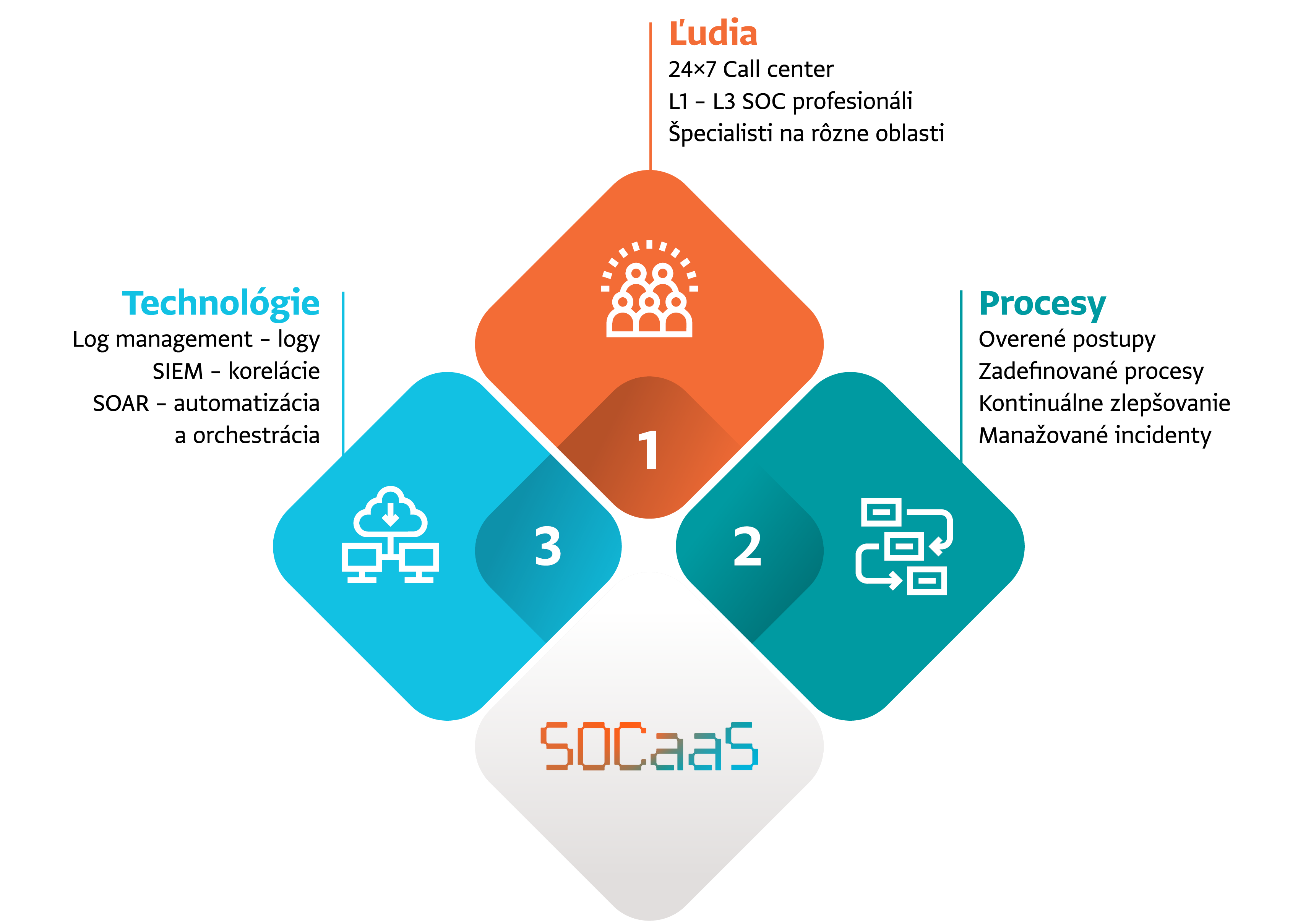 Kým technológie sa dajú zakúpiť, nájsť skúsených odborníkov na trhu práce je v dnešnej dobe nesmierne náročné. Taktiež aj tvorba procesov vyžaduje čas a skúsenosti. Logickým riešením pre túto situáciu je zakúpenie SOC ako služby (SOCaaS – SOC as a Service). SOCaaS prináša nielen úsporu ľudských zdrojov, finančnú úsporu na nákup licencií, ale aj nákup okamžitého know-how v oblasti bezpečnosti. Kvalitný SOC teda stojí na ľuďoch, technológiách a procesoch.