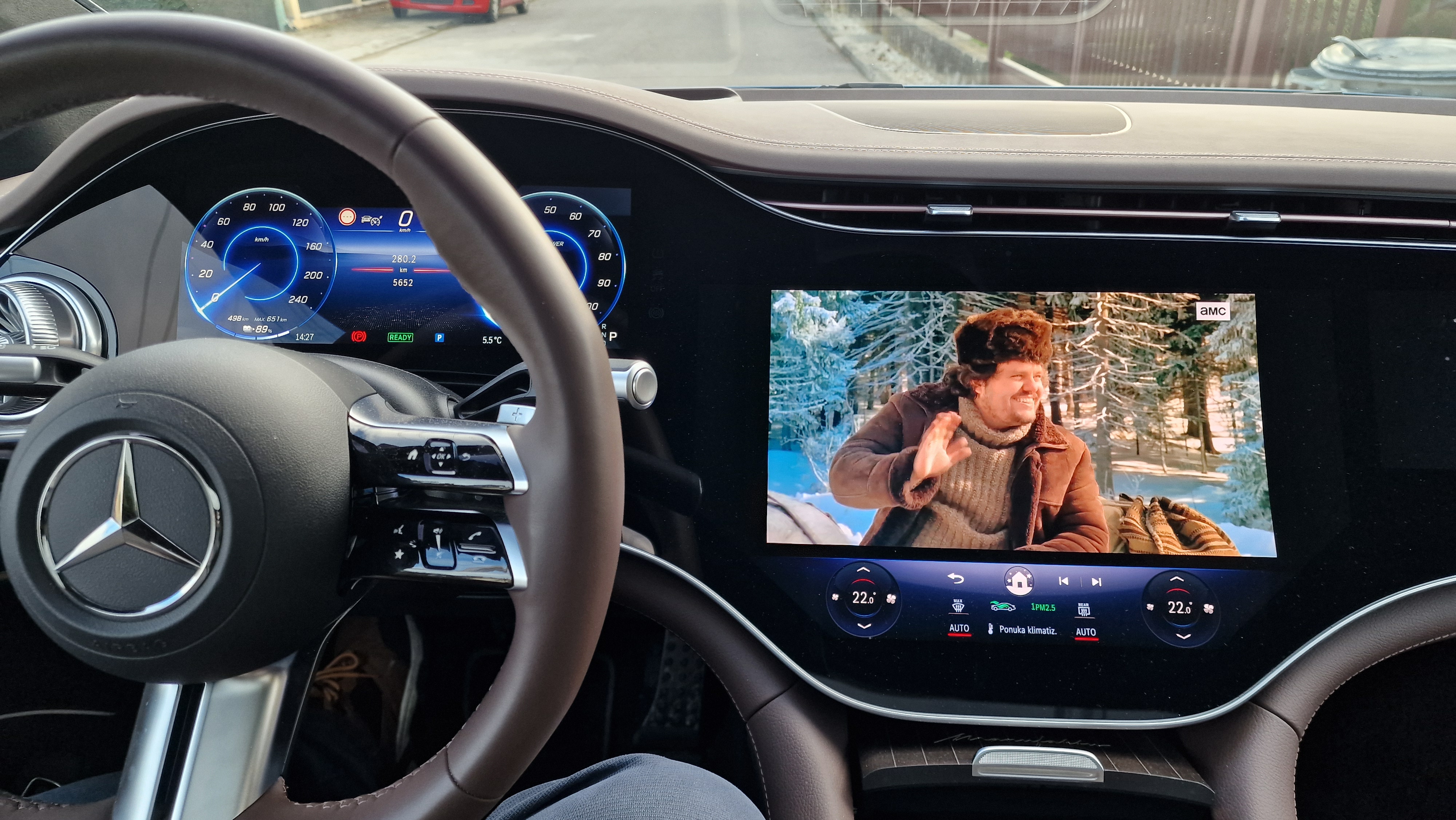 Vzduchový podvozok sa stará o vynikajúce jazdné vlastnosti a, samozrejme, aj o pohodlie. Vozidlo si jeho výšku mení automaticky na základe jazdného režimu, aby bolo čo najefektívnejšie. V zákrutách podvozok vyrovnáva náklony karosérie, takže sa veziete ako na lodi. O niečo menej výkonu oproti verzii 580 na dynamike príliš nepoznáte, museli by ste presadať z jednej verzie do druhej. Aj v tomto prípade ho však je viac ako dosť, takže si bez problémov môžete užiť aj dynamickú jazdu. Mercedes EQS vás však mazná tak, aby ste plávali krajinou a kochali sa. Testovali sme v zimných podmienkach, čo sa, samozrejme, podpísalo aj na spotrebe. Pozitívom je, že aj za týchto podmienok a na diaľnici sme dosiahli dojazd takmer cez 400 km. Samozrejmosť je exkluzívny systém klimatizácie Climatronic s niekoľkostupňovou filtráciou a ionizáciou vzduchu v interiéri a ukazovateľom hodnôt pevných častíc PM 2.5 v ovzduší vonku aj v kabíne. Musím priznať, že pri pohľade na tie hodnoty vonku počas inverzie sa mi často ani nechcelo vystupovať z auta.
