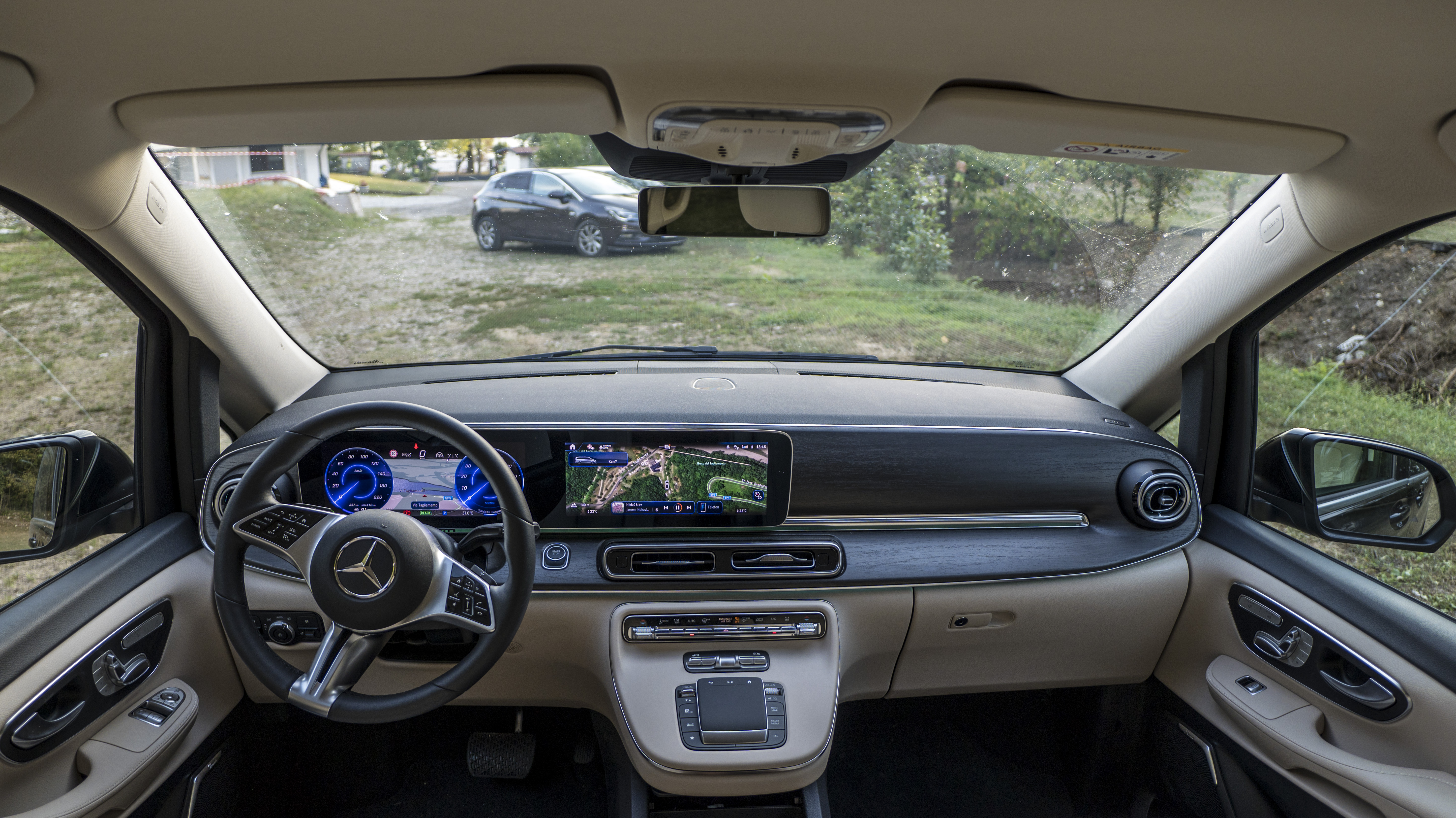 Najviac zmien objavíte v interiéri, ktorý prešiel výraznou modernizáciou s dôrazom na digitalizáciu a luxus. Oproti staršej generácii, ktorá ešte používala elektromechanický prístrojový štít, tu už nájdete dvojicu 12,3-palcových širokouhlých displejov, ktoré poskytujú vodičovi všetky potrebné informácie na komfortnú a bezpečnú jazdu. Nový dizajn palubnej dosky pripomína osobné modely s elegantnými tmavými hliníkovými prvkami a dekorom z dreva. Zahŕňa aj štýlové ventilačné dýzy a nový volant s kapacitnou detekciou pustenia z rúk. Komfort vo vozidle zvyšujú aj nové funkcie, ako je bezdrôtové nabíjanie smartfónov, vyhrievanie volantu a ambientné osvetlenie interiéru s možnosťou výberu zo 64 farieb. EQV je teraz sériovo vybavené posuvnými dverami aj na ľavej strane vozidla, čo ešte viac uľahčuje prístup do zadnej časti interiéru. Dvere sú ovládané elektricky aj z miesta vodiča.