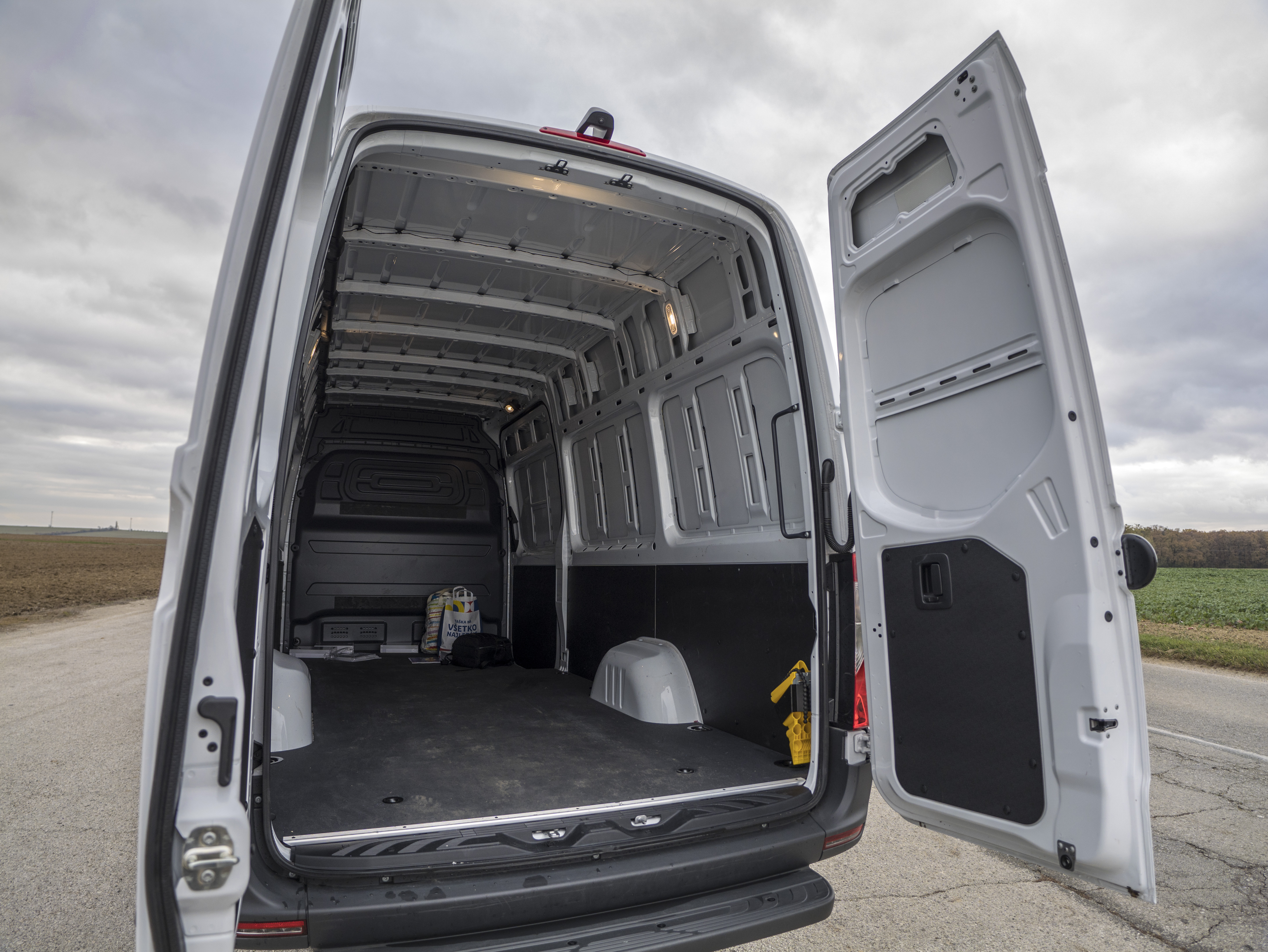 Dodáva sa v dvoch karosárskych variantoch (skriňová dodávka a šasi), dve dĺžky vozidla a tri rôzne veľkosti batérií s využiteľnou kapacitou 56, 81 a 113 kWh ponúkajú pomerne široké možnosti výberu. Testované vozidlo bolo v najdlhšej verzii s batériou s kapacitou 113 kWh. eSprinter využíva batérie s technológiou lítium-železo-fosfát (LFP), ktoré neobsahujú kobalt ani nikel, čo ich robí nielen ekologickými, ale aj mimoriadne odolnými proti opotrebeniu. Tento typ batérií znáša veľké počty nabíjacích cyklov, pričom mu vyhovuje nabíjanie na 100 % kapacity a je bezpečný pri poškodení, na rozdiel od technológie NMC nemá tendenciu horieť. V osobných elektromobiloch sa tieto batérie používajú menej pre nižšiu mernú kapacitu, v podlahe dodávky však väčšie rozmery batérie natoľko neprekážajú, je tam podstatne viac miesta. S užitočným zaťažením až do 4,25 tony a nákladovým priestorom s objemom 14 m2 je eSprinter ideálne riešenie na široké spektrum rôznych úloh.