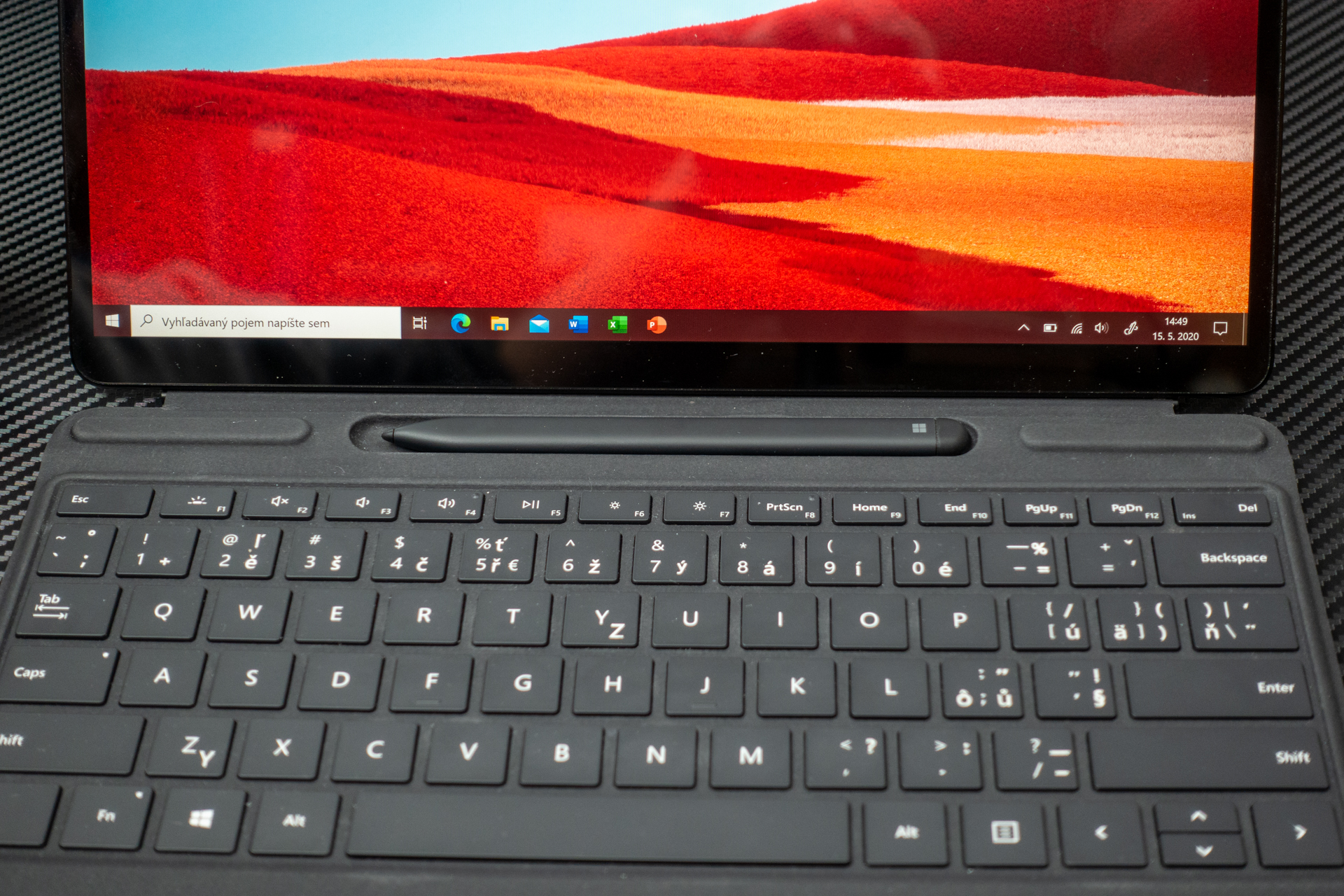 No vráťme sa k recenzii. „Toto bude vážny konkurent iPadu Pro a vynikajúci pracovný nástroj,“ taký bol môj prvý dojem po vybalení tenkého tabletu s veľkým displejom a štýlovým a zároveň nenápadným dizajnom. Po pripojení krytu s kvalitnou klávesnicou sa tento pocit ešte viac umocnil. Dizajn tabletu je jednoznačne prémiový, tenký a vďaka odklopnému stojanu aj účelový. Ponúka sa, samozrejme, aj porovnanie v rámci produktovej rodiny Surface. Oproti doterajším modelom Surface Pro je nový X štíhlejší a má elegantnejšie zaoblené rohy. K dispozícii je len v matnom čiernom farebnom variante. Kryt s klávesnicou a elektronickým perom treba kúpiť zvlášť, prípadne občas je súčasťou akciovej ponuky. Zadná stena je z materiálu alcantra, príjemného na dotyk. Kryt je s telesom tabletu spojený magneticky, pričom poloha je vymedzená dvoma výčnelkami. V jednom z nich je konektor na elektrické prepojenie. Ploché elektronické pero je v priehlbine plochy, ktorá sa takisto dá magneticky prichytiť k rámiku pod displejom. Po zatvorení krytu je tak pero bezpečne chránené proti vypadnutiu pri akejkoľvek manipulácii. V tejto priehlbine sa zároveň bezdrôtovo nabíja. Písanie na klávesnici je veľmi pohodlné, a kto ovláda rýchly strojopis, môže sa naplno realizovať. Podsvietenie je samozrejmosť.