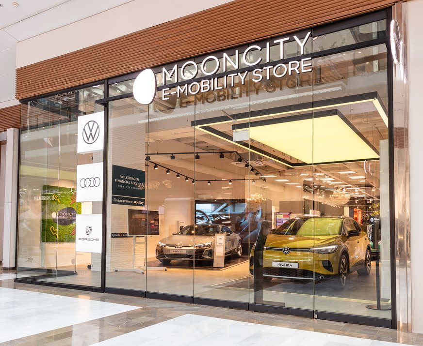 Spoločnosti Porsche Slovakia a Porsche Inter Auto Slovakia, ako oficiálni importéri viacerých značiek koncernu VW AG na Slovensku, pripravili v spolupráci s partnermi ZSE Drive a spoločnosťou Volkswagen Finančné služby v nákupnom centre Aupark v Bratislave projekt s názvom Mooncity e-mobility store. Podobný projekt sa už s úspechom realizuje v Rakúsku – konkrétne vo Viedni a v Salzburgu. Motto projektu znie: „E-mobilita je tu a teraz!”