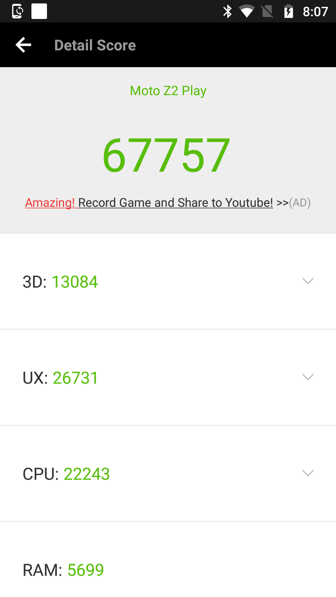 Pri bežnom používaní sme nezaznamenali žiadny náznak zaváhania, a to ani pri náročnejších hrách. Procesor je dobrá voľba aj s ohľadom na spotrebu energie z batérie. Všetkých osem jadier je typu Cortex-A53, ktoré sa ako doplnkové používajú aj v drahších procesoroch na pokrytie bežnej energeticky úspornej prevádzky. Kovové telo a väčšie rozmery umožňujú dobrý odvod tepla, takže telefón sa ani pri maximálnej záťaži a nasadenom zadnom plastovom kryte neprehrieva. Kapacita 4 GB RAM je v tejto kategórii absolútna špička. Prírastok výkonu v porovnaní s vlaňajším modelom najlepšie vyjadrí nárast skóre v AnTuTu benchmarku zo 61 718 na 67 757.