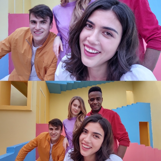 Porovnanie záberu širokouhlým a ultraširokouhlým objektívom selfie kamery (foto: Motorola)