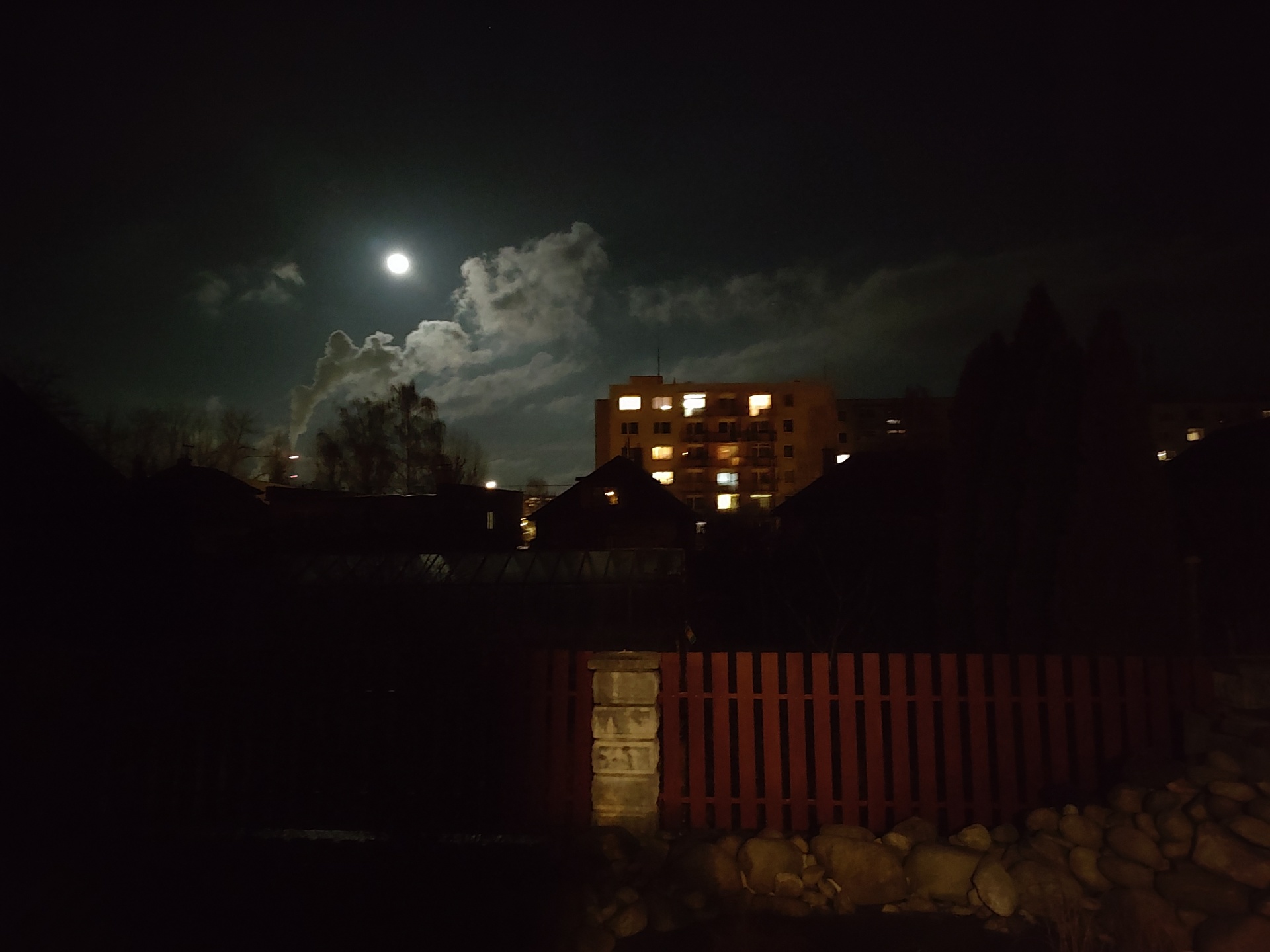 Večerný záber pri veľmi slabom osvetlení v bežnom (vľavo) a nočnom režime (vpravo)