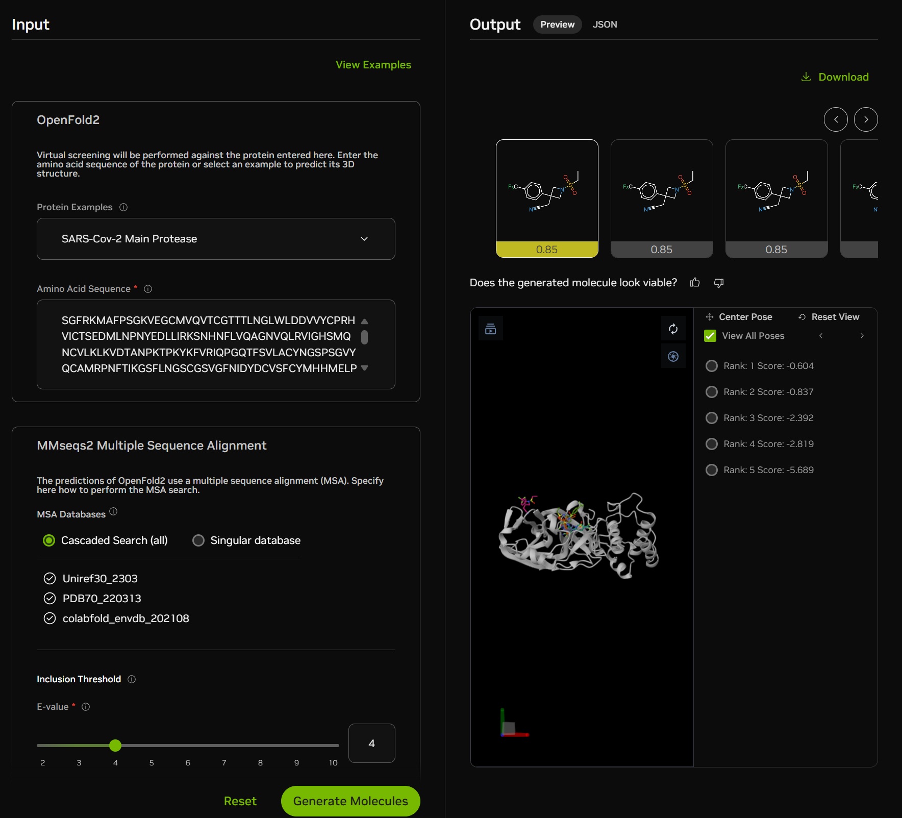 Build A Generative Virtual Screening Pipeline tento plán ukazuje, ako generatívna AI a zrýchlené mikroslužby NIM môžu navrhovať optimalizované malé molekuly inteligentnejšie a rýchlejšie. Plán sa zameriava na „preosievanie“ a optimalizáciu knižnice malých molekúl s cieľom presne určiť chemické štruktúry, ktoré sa môžu viazať na cieľový proteín. Tento plán môže značne zefektívniť spôsob, akým farmaceutické spoločnosti pristupujú k objavovaniu liekov.