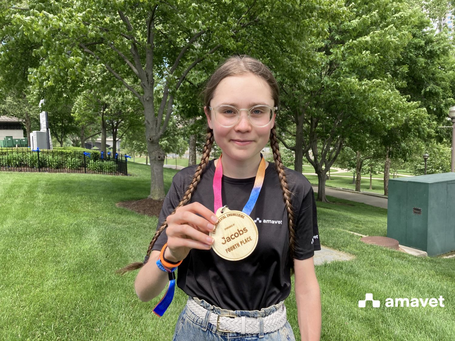 Druhé želiezko v ohni z AMAVET-u bola Anna Podmanická, ktorá v kategórii Environmental Engineering získala 1. miesto v špeciálnej cene King Abdulazis & his Companions Foundation for Giftedness and Creativity a v hlavnej cene v kategórií Environmelntal Engineering získala vynikajúce 4. miesto!