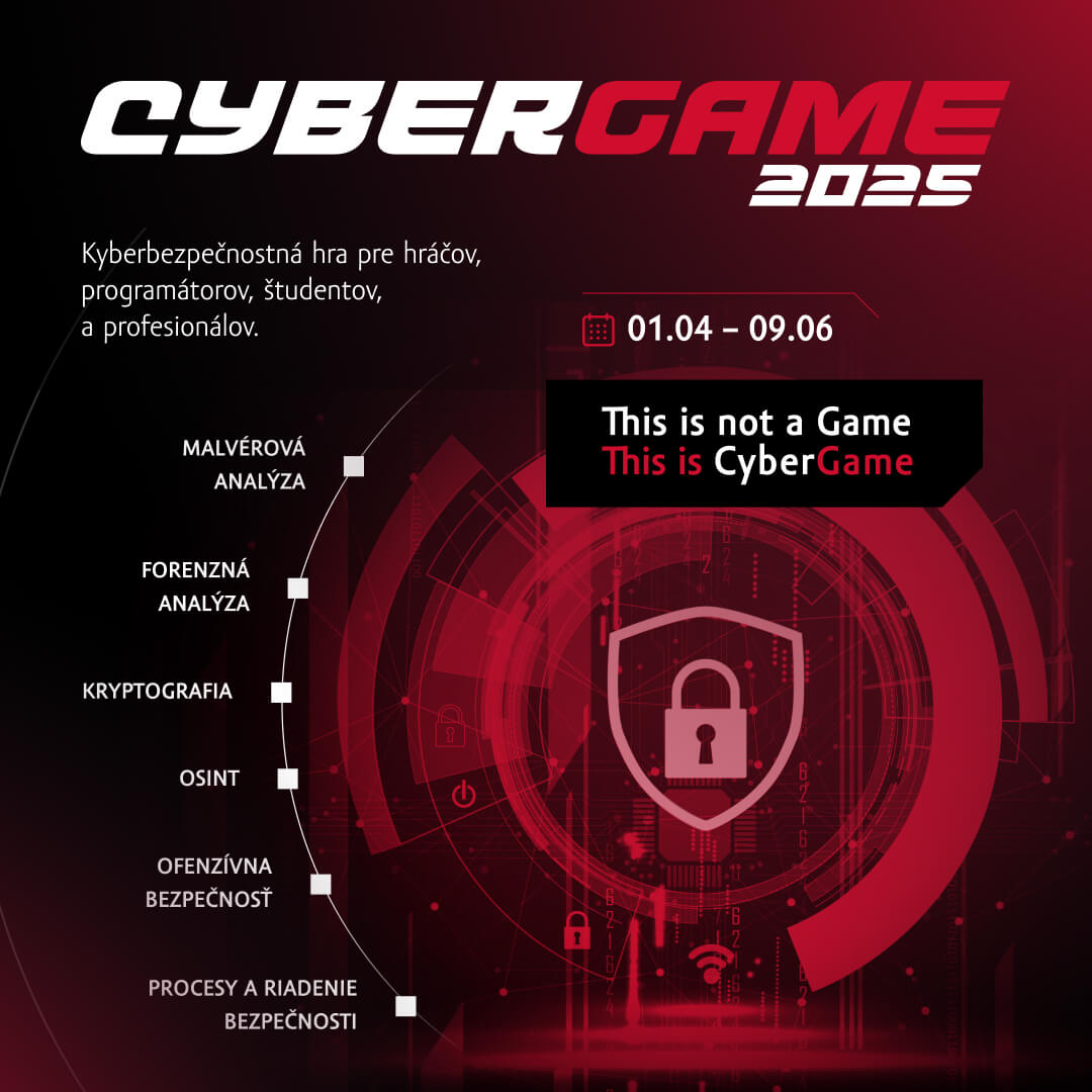Atraktívny svet kybernetickej bezpečnosti sa širokej verejnosti otvára už štvrtý rok. Záujemcovia, bez rozdielu veku, majú možnosť vyskúšať si na hernej platforme CyberGame praktické úlohy z rôznych oblastí kyberbezpečnosti. Odborným garantom súťaže je Národný bezpečnostný úrad.