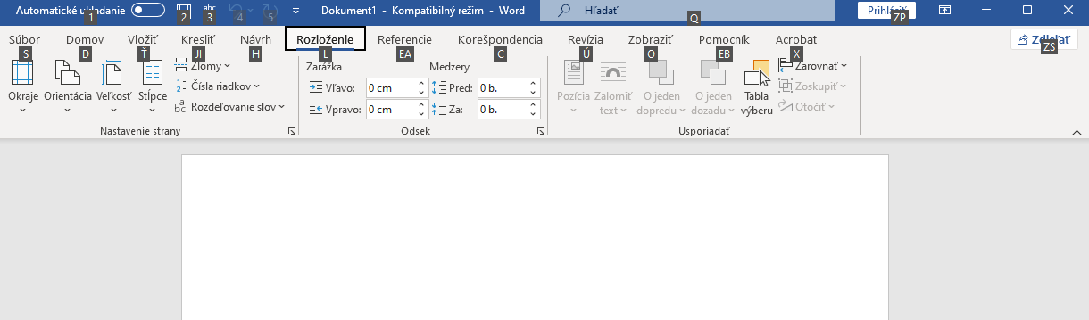 ZobrazenIE rýchlej voľby menu po stlačení tlačidla ALT v programe Word
