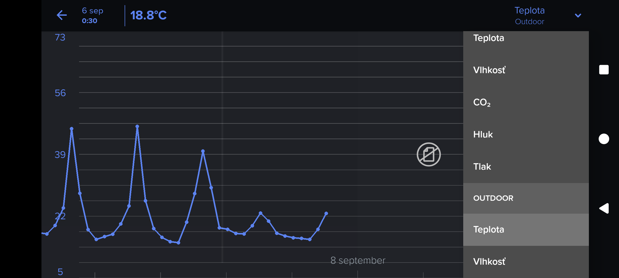 Po otočení smartfónu na šírku sa zobrazí prehľadný graf priebehu nameraných hodnôt. V aplikácii si môžete nastaviť upozornenia, napríklad na pokles vonkajšej teploty pod určenú hodnotu, čo ocenia hlavne záhradkári na jar, prekročenie nastavenej hodnoty CO2, vysokú, alebo nízku hodnotu atmosférického tlaku a podobne.