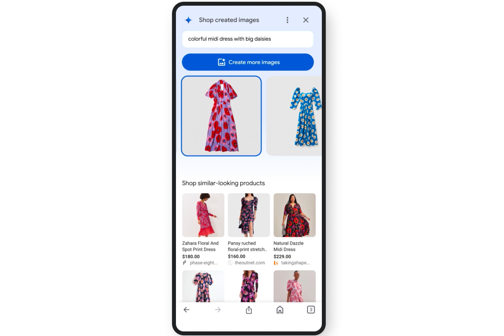Umelá inteligencia vytvorí fotorealistický obraz vášho nápadu na oblečenie s niekoľkými variáciami. Môžete klepnúť na ten, ktorý sa vám páči najviac. Potom sa posuniete nadol, aby ste našli podobné nakupovateľné položky uvedené na webe. Táto myšlienka bola pôvodne spustená ako experiment v októbri minulého roka exkluzívne pre používateľov, ktorí sa rozhodli pre funkciu Search Generative Experience (SGE) v rámci Search Labs.