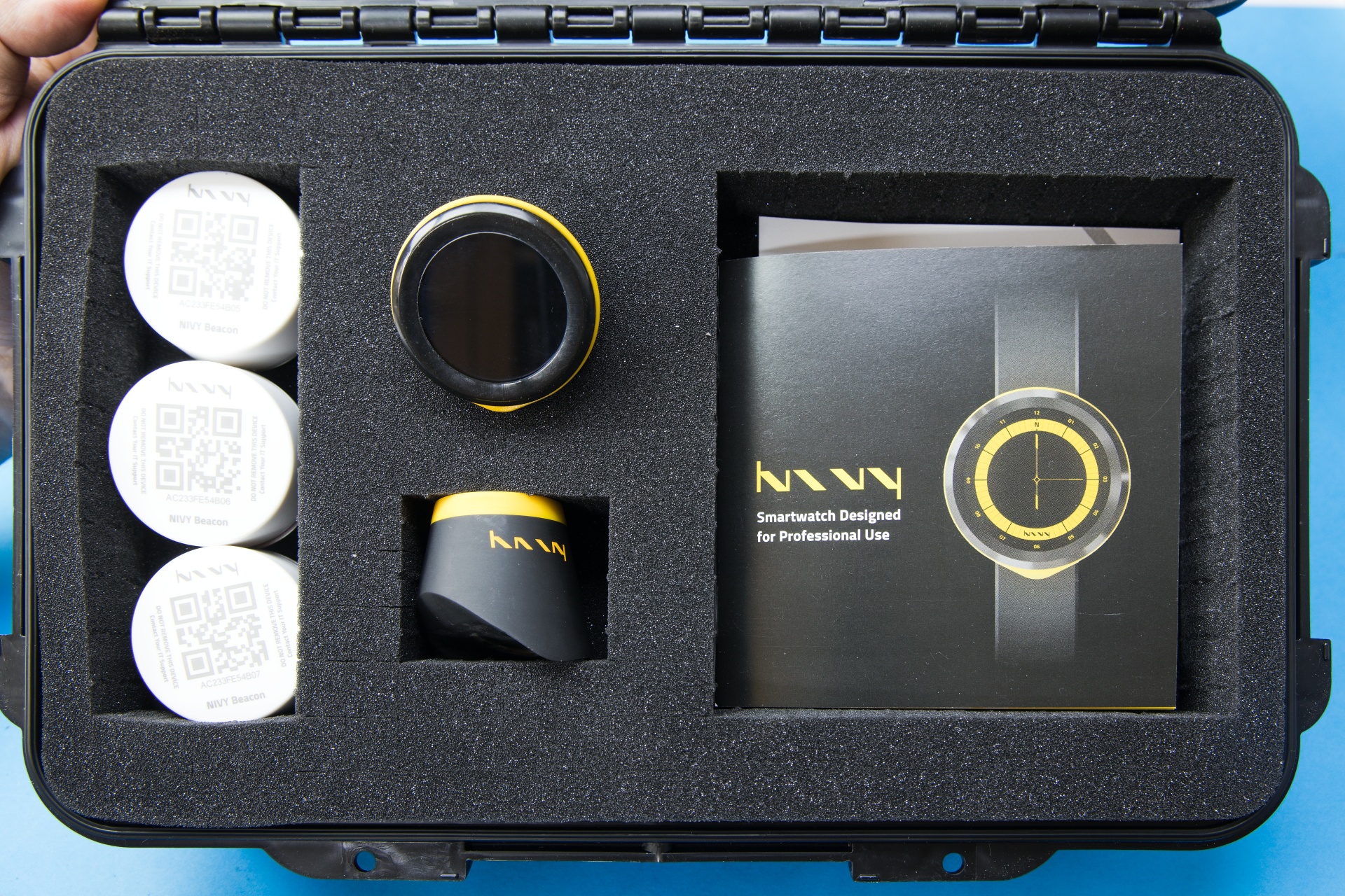 Na testovanie sme mali k dispozícii základnú súpravu obsahujúcu hodinky, nabíjaciu stanicu a tri zariadenia typu beacon, čo sú rádiové majáky slúžiace na čo najpresnejšie určovanie polohy. Všetky komponenty sú uložené v praktickom plastovom kufríku. Cena takejto štartovacej súpravy je 1180 eur. V reálnom priemyselnom nasadení sa využíva nabíjacia stanica, kde sa nabíjajú hodinky všetkých pracovníkov súčasne.