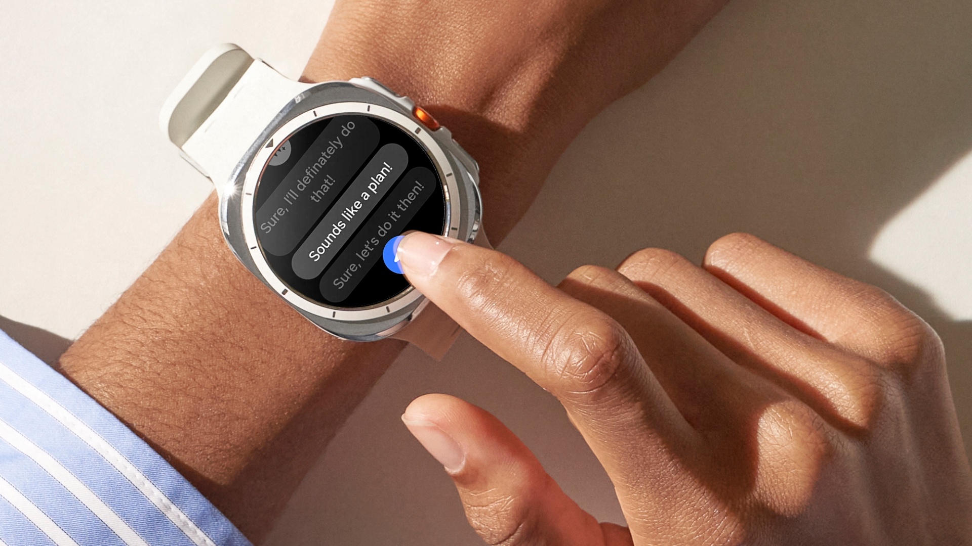 Ikonický kruhový dizajn hodiniek Samsung Galaxy Watch7 je možné zladiť s osobným štýlom používateľa pomocou nových remienkov so zvlneným tvarom a farebnými stehmi a širokej škály ciferníkov. Hodinky ponúkajú aj intuitívnejšie a plynulejšie používanie naprieč prepojenými zariadeniami Galaxy. Odpovedanie na správy bude možné bez námahy pomocou inteligentne navrhovaných odpovedí na základe analýzy predchádzajúcich konverzácií pomocou Galaxy AI. Gestom dvojitého stisnutia prstov môže používateľ jednoducho ovládať zariadenie Galaxy Watch a pripojený smartfón Galaxy, aj keď má plné ruky.