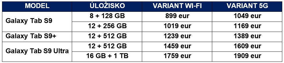 Nové tablety Samsung Galaxy Tab S9 budú k dispozícii v troch variantoch
