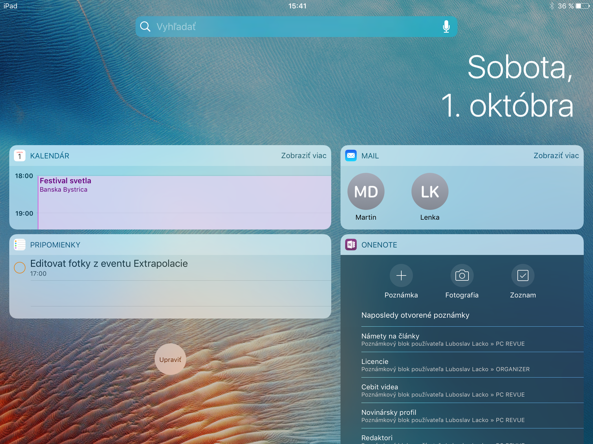 Prvé dve funkcie môžete aktivovať priamo z obrazovky uzamknutia. Posunutím prsta od pravého okraja obrazovky smerom do stredu aktivujete aplikáciu Fotoaparát. Rovnakým gestom od ľavého okraja zobrazíte obrazovku s widgetmi. Keď už spomíname tieto gestá, známe aj ako swipe, ktoré sa, mimochodom, prvýkrát objavili v dotykovom ovládaní Windows 8 a v „desiatke“ sa nepoužívajú, po odomknutí zariadenia môžete gestom zhora zobraziť notifikačné a gestom zdola ovládacie centrum, obidve lišty sú zlepšené.
