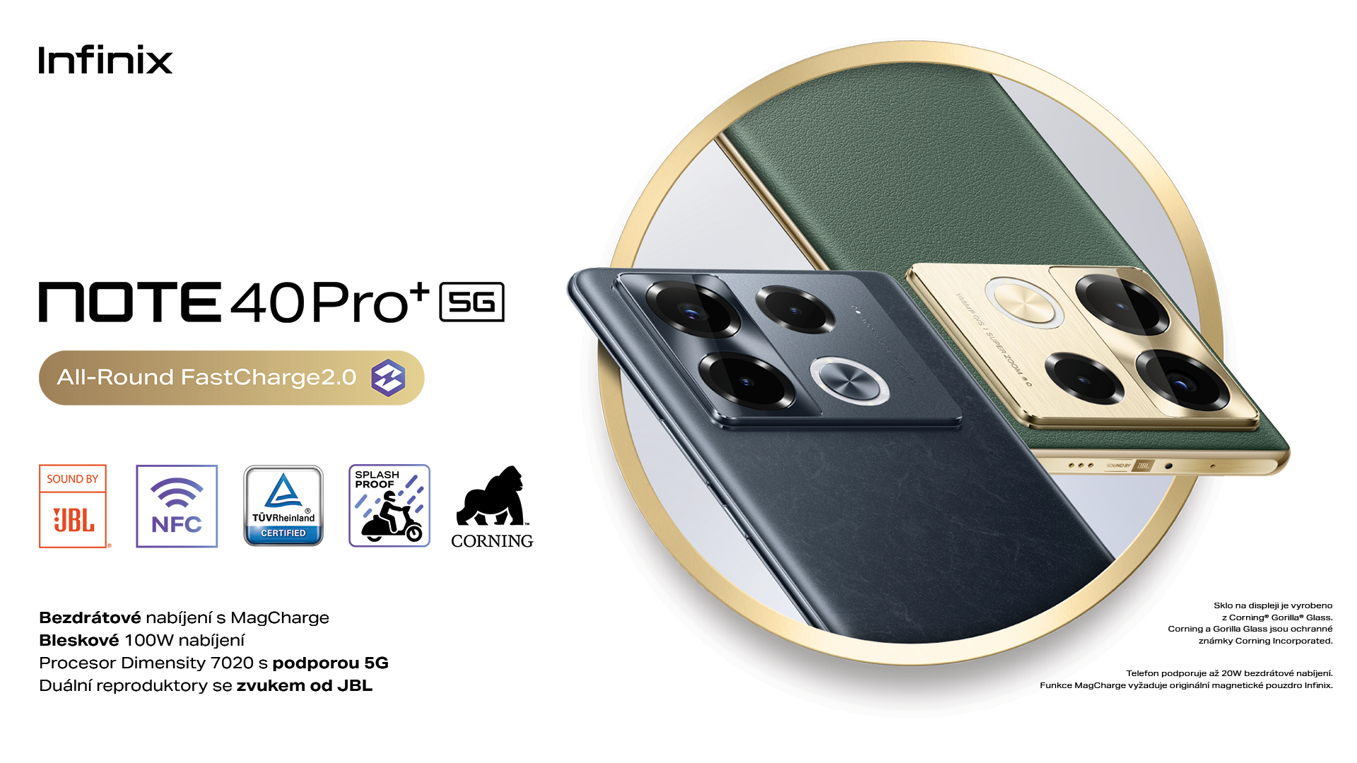 Nejvyšší model Infinix ze současné řady NOTE míří na český a slovenský trh. NOTE 40 Pro+ 5G s 100W rychlým nabíjením a podporou sítě 5G získají zákazníci již od 8 499 Kč / 339,9 EUR. Jako dárek dostanou nakupující magnetickou bezdrátovou nabíječku a také reproduktor Niceboy Supersonic XL v hodnotě 1 199 Kč! V obchodech se také záhy objedví NOTE 40 Pro a NOTE 40 ve speciální, limitované verzi Racing Edition, navržené ve spolupráci s designérským centrem DESIGNWORKS patřícím do skupiny BMW.