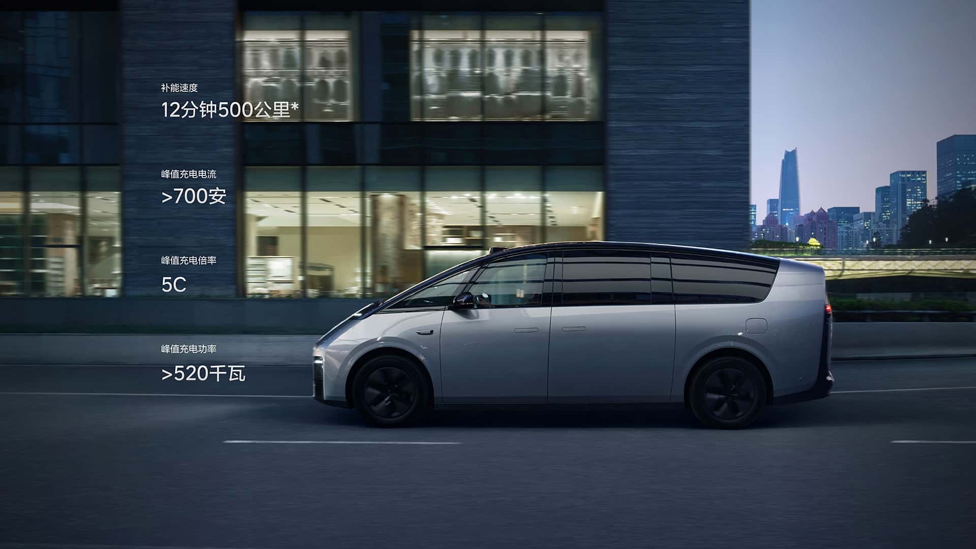 Podľa webovej stránky spoločnosti možno dosiahnuť nabíjací výkon 520 kW (pri intenzite prúdu 700 A). Zrejme ide o svetový rekord. Rimac Nevera má dosahovať 500 kW, Lotus Eletre 350 kW, nové Porsche Taycan 320 kW a Hyundai Ioniq 5 „len“ 240 kW. No dôležitejšia ako maximálna hodnota je priemerný nabíjací výkon. Ten by mal podľa Li Auto presiahnuť 400 kW v rozsahu nabíjania 10 – 80 %. Čas nabíjania bol počas testu výrobcu len 10 minút a 36 sekúnd (z 10 na 80 %).