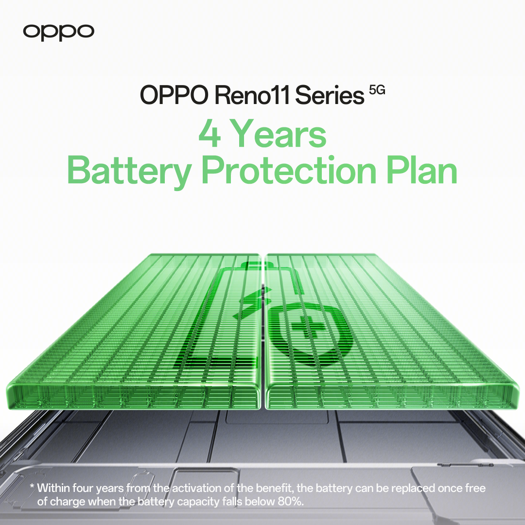 Spoločnosť OPPO podporí predaj nového smartfónu OPPO Reno11 F 5G programom bezplatnej ochrany batérie na 4 roky. Zákazníci počas tejto doby môžu obdržať jednu bezplatnú výmenu batérie v prípade, že kapacita telefónu pri bežnom používaní klesne. Program bezplatnej ochrany batérie sa vzťahuje len na smartfóny zakúpené u autorizovaných partnerov OPPO. Ďalšie podmienky bezplatnej výmeny batérie počas 4 rokov sú k dispozícii na oppo.com.
