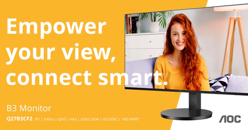 Díky svému budoucímu rozlišení QHD a všestranným funkcím se monitor AOC Q27B3CF2 stane nepostradatelnou součástí široké škály domácích a kancelářských sestav a nabídne vyvážený design, výkon a pohodlí. Řada B3 společnosti AOC navíc nabízí řadu 24“ a 27“ modelů s rozlišením Full HD, s výškově nastavitelným stojanem (24B3CF2, 27B3CF2) nebo bez něj (24B3CA2, 27B3CA2), všechny s obnovovací frekvencí 100 Hz a připojením USB-C, který potěší všechny typy domácích i kancelářských uživatelů.