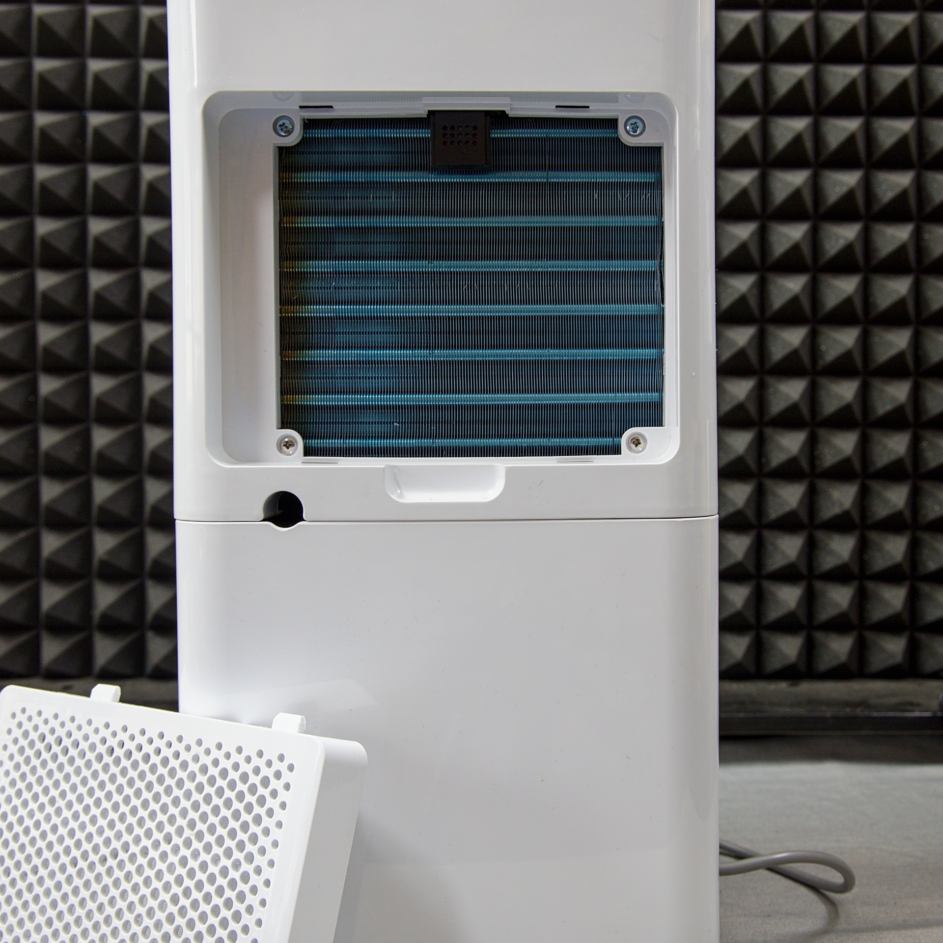 Vďaka kolieskam ho môžete jednoducho presúvať tam, kam potrebujete. Odvlhčovač má nádobku na zachytenie skondenzovanej vody s objemom 2,5 l vody. Ak chcete vysúšať vlhké priestory a mať odvlhčovač v prevádzke nepretržite, k dispozícii je hadička, ktorou môžete vodu zachytenú zo vzduchu odviesť napríklad do odtoku v podlahe. Z vlastnej skúsenosti neodporúčam používať na tento účel nádoby, napríklad nízke vedro, pretože po jeho naplnení začne voda vytekať von. Môžem potvrdiť, že údaj výrobcu o zachytení 6 až 12 litrov vody na 24 hodín v závislosti od okolitej teploty a vlhkosti je reálny, takže malé vedro sa vo vlhkých priestorovh naplní cez noc. Naproti tomu vstavaná nádobka má plavák a keď je plná prístroj to signalizuje a vypne sa.