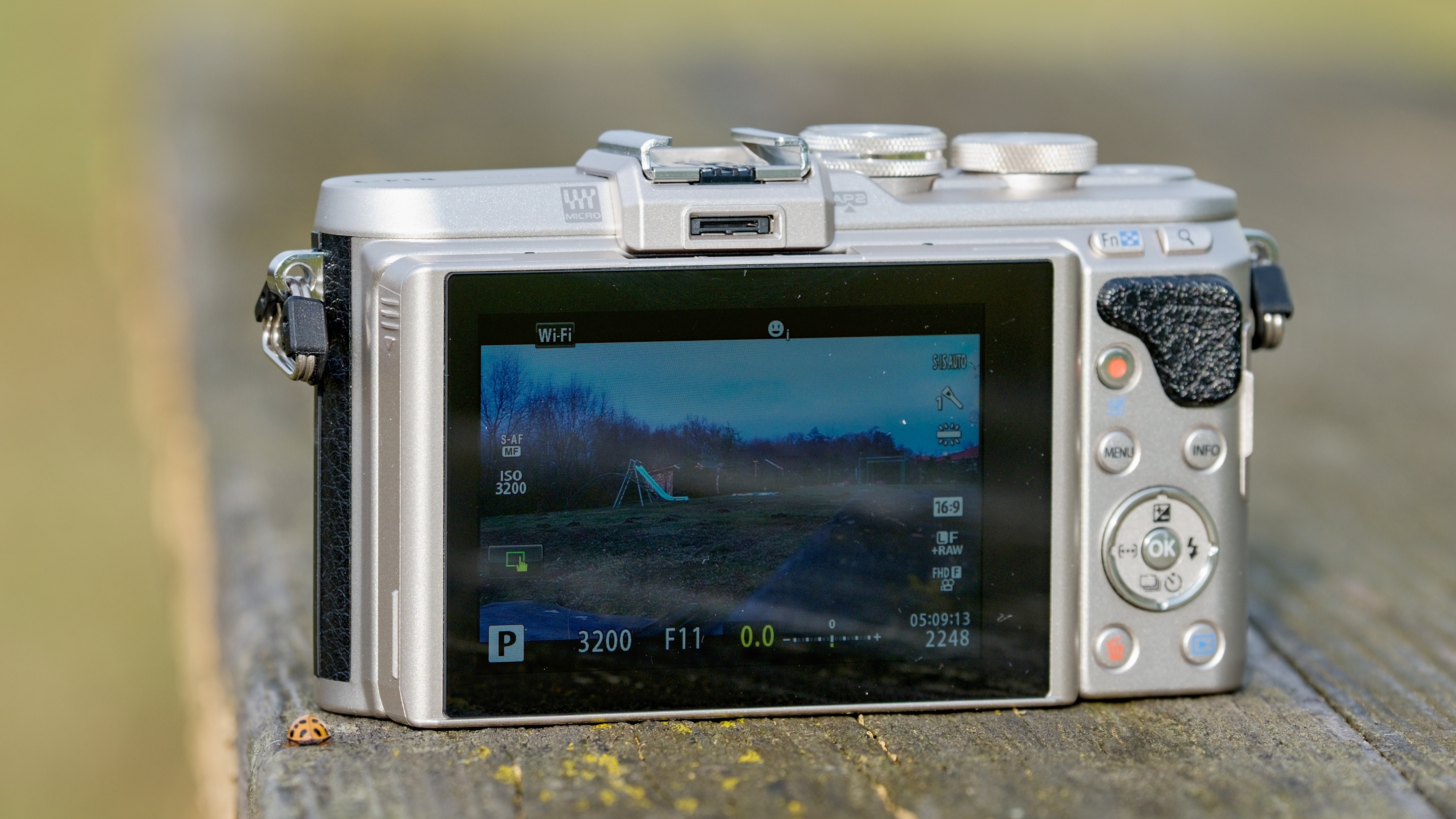 Maximálne rozlíšenie je full HD, ale iba pre 30 sn./s. Fotoaparát je vybavený 3" displejom, ktorý sa dá vyklopiť o 90° nahor alebo až o 180° nadol. To je praktické pri selfie z ruky, ale pri natáčaní samého seba napríklad na videoblog, keď je prístroj na statíve, je to nepoužiteľné. Pozitívne hodnotíme prítomnosť Wi-Fi, ktoré umožňuje prenos súborov aj diaľkové ovládanie fotoaparátu. Z mobilu zase môžete prenášať dáta GPS na označenie polohy fotografií. Spárovanie je riešené pomocou QR kódu, ktorý sa zobrazí na displeji fotoaparátu. Prístroj nemá NFC. Prenos fotiek je veľmi rýchly, takže hneď po odfotení ich môžete jednoducho publikovať alebo poslať e-mailom. Aplikácia umožňuje ich jednoduchú úpravu v smartfóne. Displej jasom postačí aj na základnú orientáciu pri komponovaní záberu, hľadáčik by bol síce lepší, no to je doména vyšších modelov. Inteligentné sánky umožňujú použiť prídavný hľadáčik. Prístroj nemá vstavaný blesk, ale v balení dostanete malý prídavný blesk, ktorý sa zasúva do koľajničiek a je napájaný z fotoaparátu. Vďaka malým rozmerom ho tam môžete nosiť stále. Sánky umožňujú aj nasadenie veľkých systémových bleskov. Fotoaparát je dokonca vybavený aj rádiovým ovládaním bleskov. Zaostrovanie pracovalo vo väčšine situácií spoľahlivo, ale s nasadenými dioptrickými okuliarmi si nevedelo poradiť a nezdetegovalo tvár. Vyvažovacia automatika mala občas problém s vyvážením bielej pri umelom osvetlení a správne vyváženie jej trvalo dlho. Ináč sme boli s kvalitou výstupov spokojní.