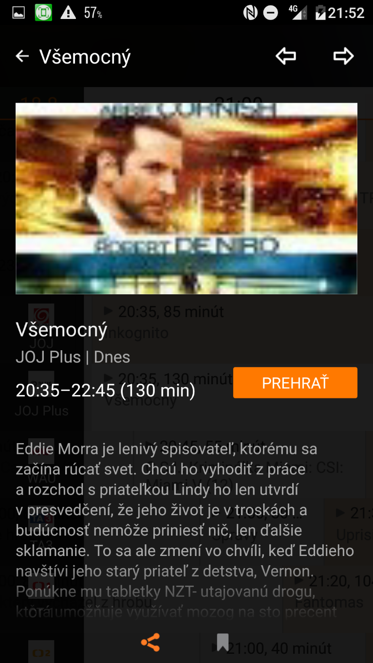 V dobe testovania bolo súčasťou služby živé vysielanie 19 programov, 31 dňový archív a prístup k videopožičovni. V rámci rôznych akcii Orange pri aktivácii vybraných hlasových a dátových paušálov poskytne službu na 3 mesiace zadarmo spolu s 2GB extra dát naviac. Ocenili sme hlavne možnosť prehrávania programov z archívu, pretože sme mohli preskočiť dlhé reklamné bloky.