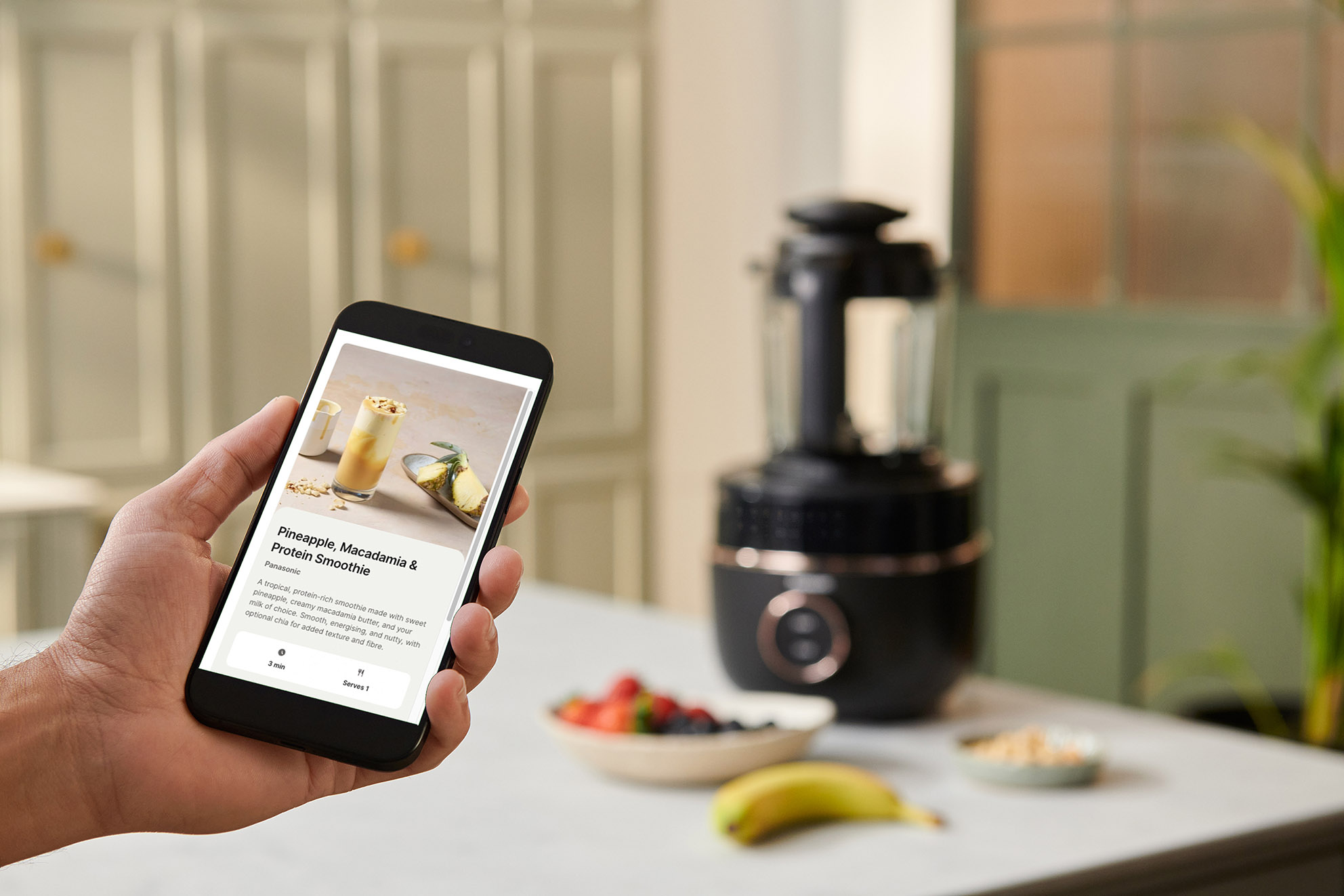 Zariadenie má moderný dizajn s matným čiernym povrchom, akcentmi v ružovom zlate a sklenenou nádobou s objemom 1,2 litra. Ovládanie je intuitívne vďaka dvom radom farebných piktogramov a stavovému displeju s centrálnym otočným voličom a tlačidlami Start – Stop. Keďže dôležitou skupinou, na ktorú zariadenie cieli, sú mamičky s malými deťmi, ktoré asi najčastejšie potrebujú robiť rôzne pyré, kaše, krémové polievky, smoothie a podobne, myslel výrobca aj na to. Jedna z kľúčových vlastností tak je tichá prevádzka, ktorú zabezpečuje špeciálny dodávaný polykarbonátorý kryt, ktorý sa nasadí na vrchnú časť pri mixovaní a dokáže výrazne znížiť hluk až asi na 60 dB. Výkonný motor so 6-čepeľovým nožom z nehrdzavejúcej ocele a rýchlosťou až 12 000 otáčok za minútu si poradí aj s tvrdšími surovinami, ako sú surová mrkva, orechy či semená. Ohrievacie teleso s príkonom 800 W dokáže zohriať obsah nádoby až na 100 °C.