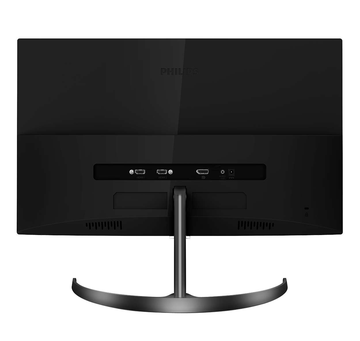 V strede spodného rámu je priehľadný výčnelok s logom výrobcu. Ten slúži aj ako usmernenie, pretože za ním je joystick na ovládanie funkcií monitora. Na ovládanie si treba chvíľu zvykať, hlavne na to, že zvolená funkcia sa nepotvrdzuje stlačením, ale pohybom doprava. Potom už je intuitívne. Konštruktéri nepočítali s možnosťou upevnenia na stojan VESA. V zapustenej časti zadnej steny sú dva konektory HDMI, konektor typu DisplayPort, 3,5 mm audio jack a konektor na pripojenie externého napájacieho zdroja. Obidva typy obrazových konektorov podporujú zobrazenie 3840 × 2160 @ 60 Hz.