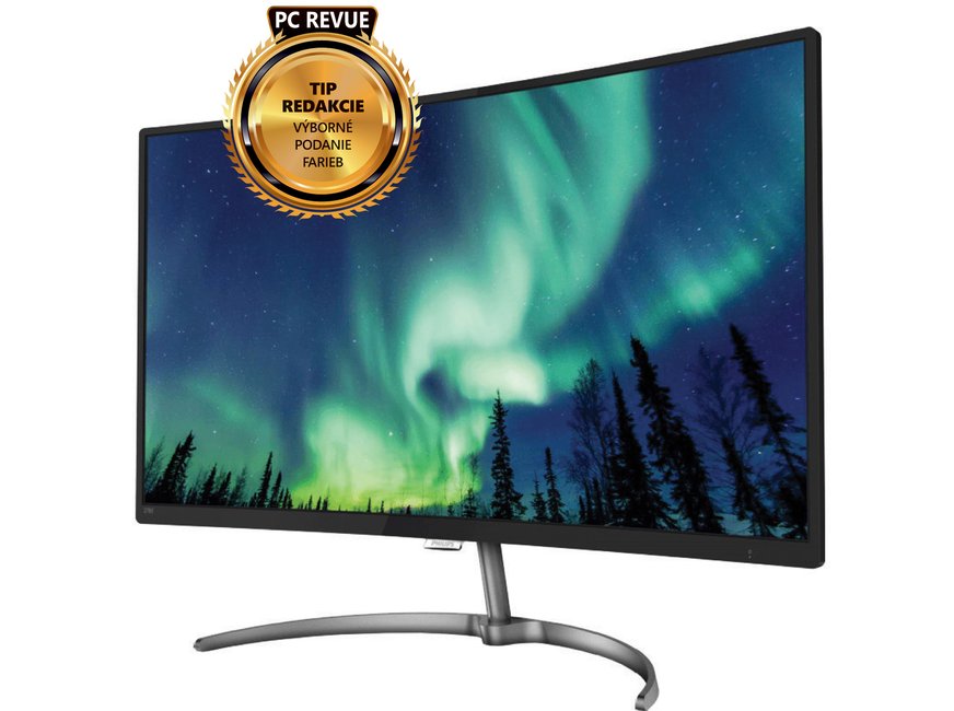 » Novinka značky Philips prichádza so zaujímavým minimalistickým dizajnom a výborným farebným gamutom. Dizajnovo sa hodí hlavne do domácnosti alebo firmy. Monitor drží na elegantnom kovovom stojane v tvare kosáka. Podstavec je efektný a pevný, ale to za cenu, že neumožňuje okrem sklonu žiadnu inú polohovatelnosť. Pri práci sa nám zdal monitor vysoko, no nemožno ho dať nižšie. Dizajn je obojstranný, takže sa dá použiť umiestnený aj tak, že je viditeľná zadná strana, aj keď usporiadanie káblov sa nijako nerieši. Vrchná časť monitora má hrúbku iba 10 mm, od polovice je hrubší pre elektroniku a konektory. Monitor disponuje výstupom na slúchadlá, 3,5 mm audio jackom, portom VGA, HDMI a DisplayPortom. Napájanie je riešené pomocou externého zdroja. Monitor je vybavený aj dvojicou stereofónnych reproduktorov s výkonom 3 W. Basy vzhľadom na ich veľkosť nemožno očakávať, no na príležitostné počúvanie hudby či rádia postačia. Ovládanie je riešené pomocou päťsmerového joysticku v strede obrazovky na zadnej strane. Dostanete sa ním k menu, ovládaniu hlasitosti, výberu vstupu alebo výberu nastavenia farieb podľa farebných profilov. Na výber sú Standart, Internet, Game a LowBlue Mode (teplejšie farby). Stlačením tohto tlačidla sa po 3 sekundách monitor vypne.
