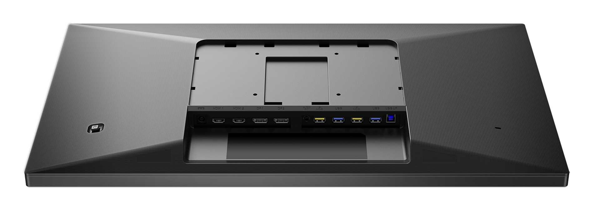 Monitor má kovový stojan s elegantným dizajnom ktorý umožňuje nenápadné, avšak praktické vedenie káblov, takže pri pohľade na zadnú stranu monitora nič nenarúša dizajnovú čistotu. Výšku zobrazovacieho panelu je možné upraviť v rozsahu 13 cm, dá sa otočiť o 90 stupňov a naklopiť v rozsahu -5 až 20 stupňov. Tenké bočné rámiky umožňujú umiestniť dva, prípadne tri monitory vedľa seba a rozšíriť si tak zobrazovanú plochu. Možnosť ergonomického nastavenia polohy je pri dlhšom hraní veľmi dôležitá. Hodiny strávené hraním môžu mať významný vplyv aj na oči, a preto je samozrejmosťou režim LowBlue a regulácia jasu bez blikania, čiže Flicker-free. K dispozícii je aj USB hub a vstavané reproduktory s výkonom 2 x 5 W. Náročnejší hráči samozrejme použijú slúchadlá, alebo externé reproduktory.